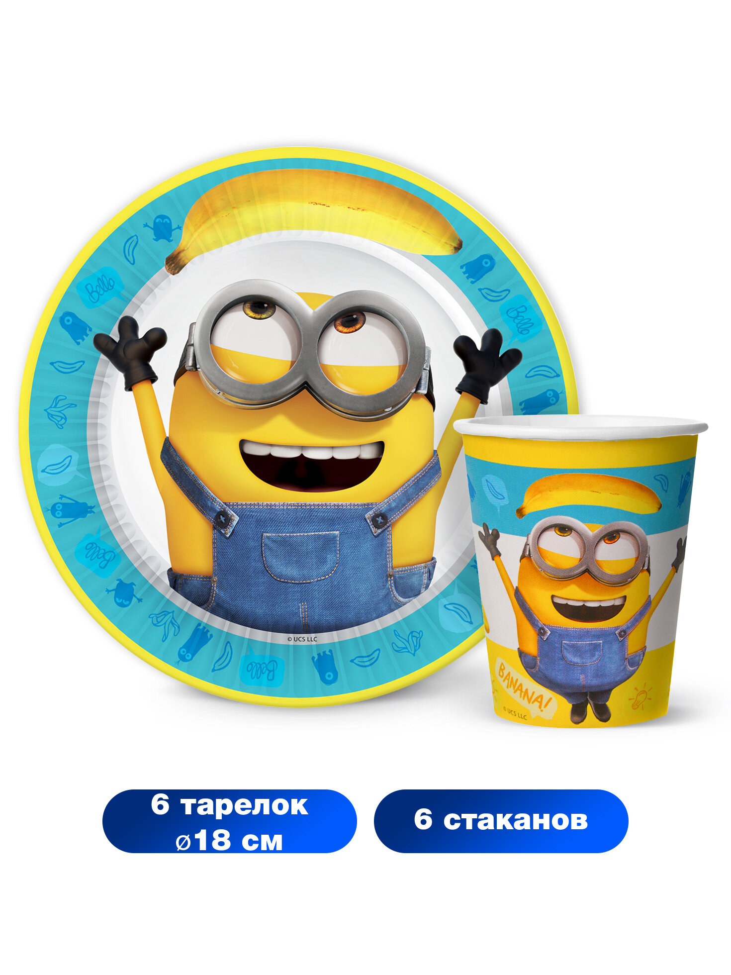 10 цен на Набор одноразовой бумажной посуды для праздника ND Play / Minions 2 №1 (стакан, тарелка 18 см, по 6 шт.)