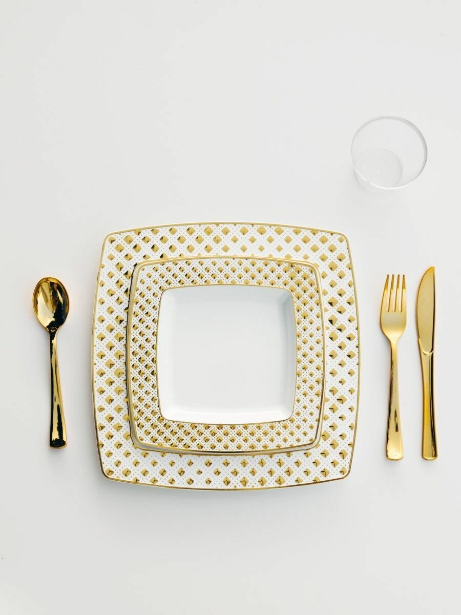 10 цен на Одноразовая пластиковая посуда. Набор посуды для сервировки.