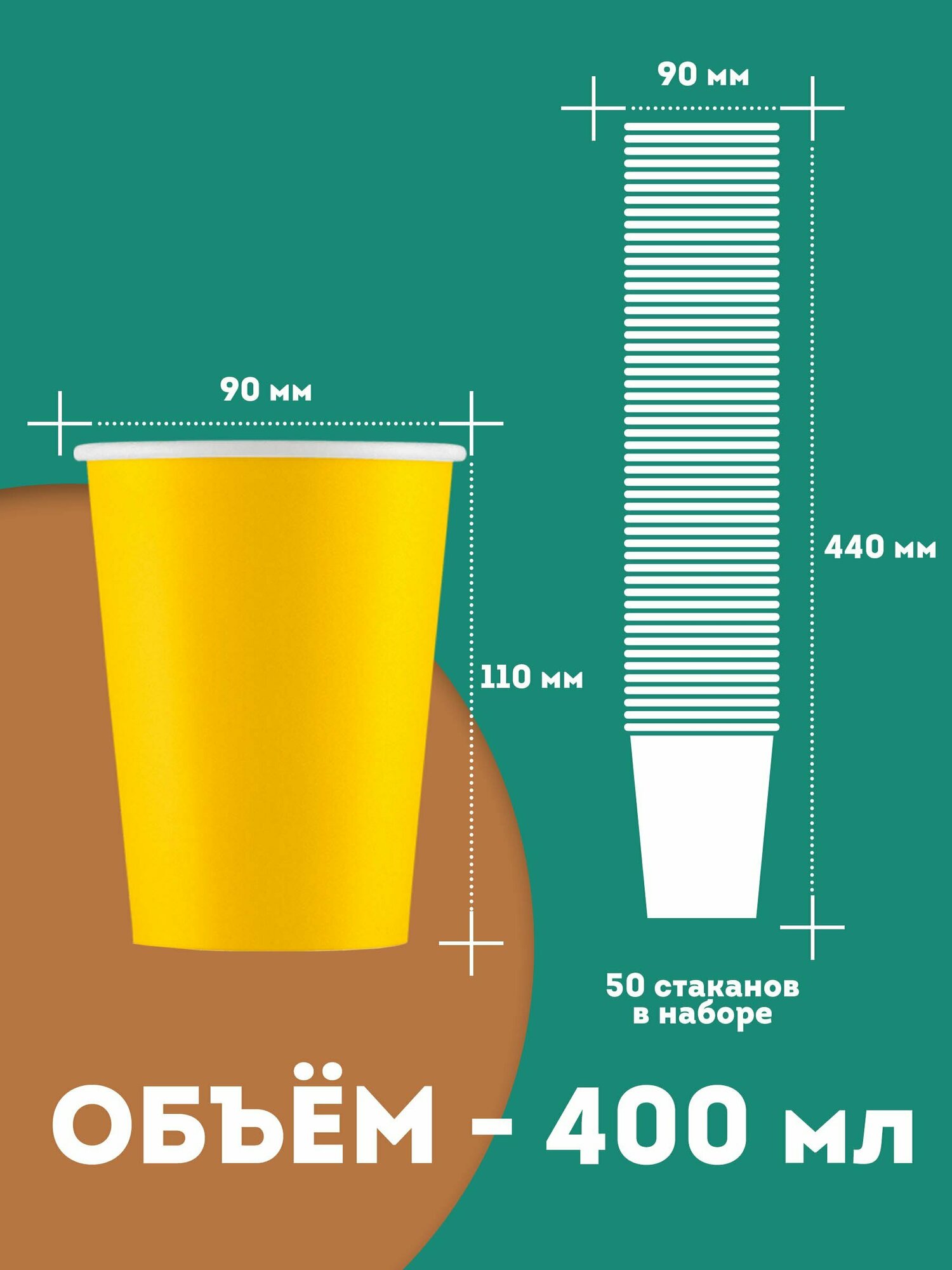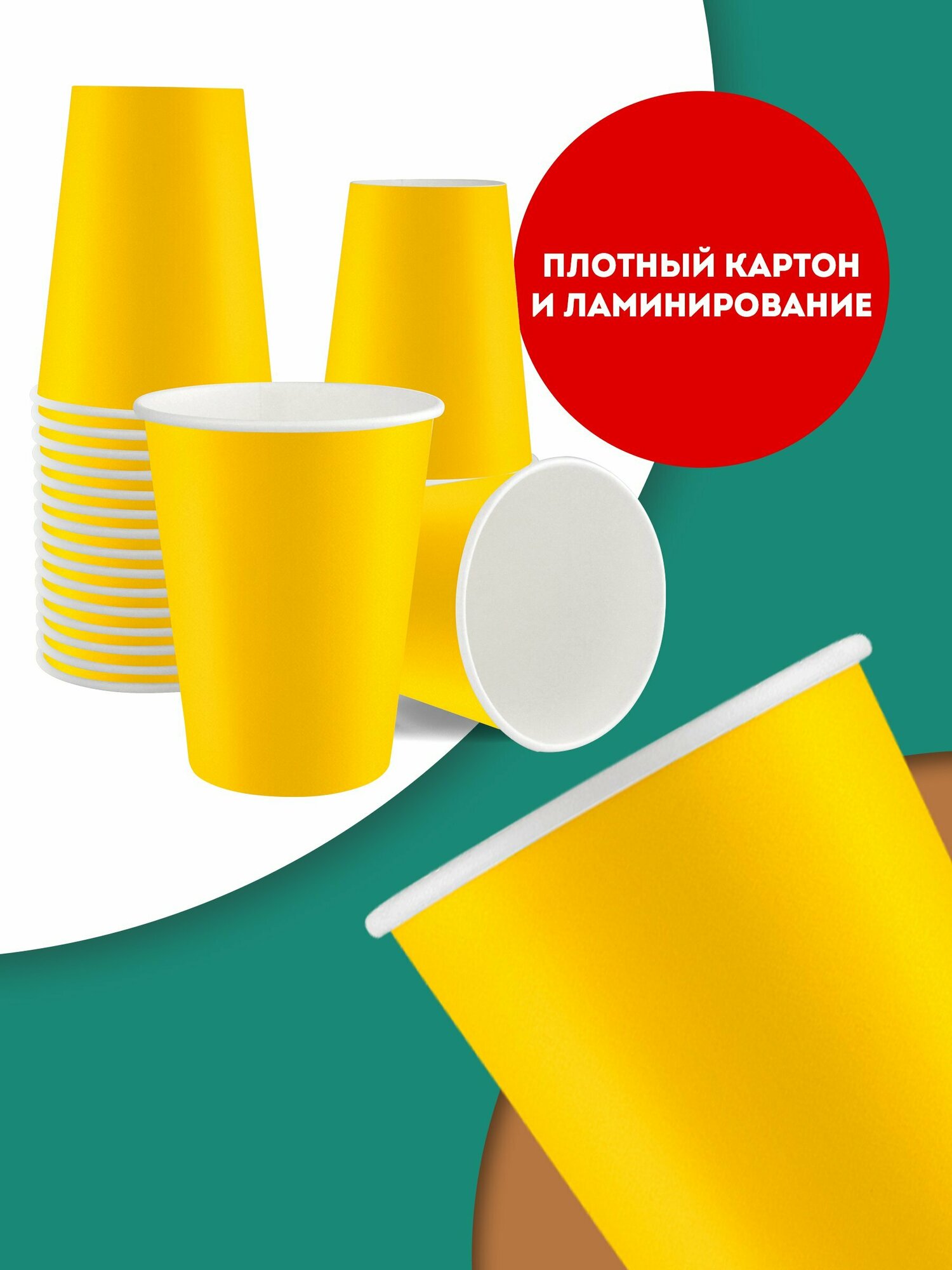 Набор одноразовых бумажных стаканов, 400 мл, 50 шт, жёлтый, однослойные; для кофе, чая, холодных и горячих напитков информация:
