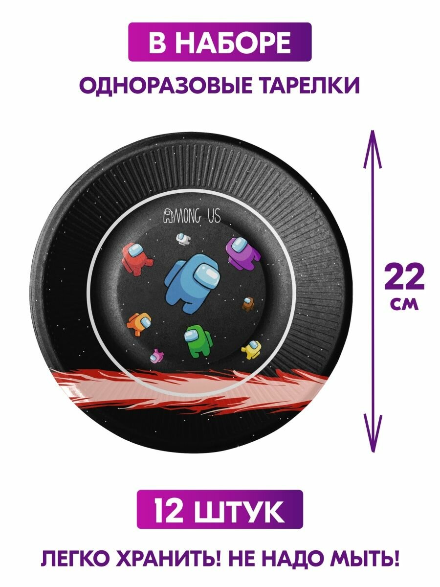 10 цен на Одноразовая посуда для праздника на день рождения, детская, бумажная Амонг ас. Одноразовые тарелки и стаканы на 12 персон