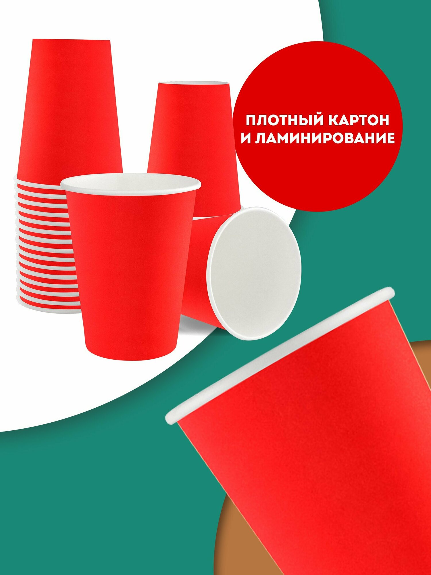 Набор одноразовых бумажных стаканов, 400 мл, 50 шт, красные, однослойные; для кофе, чая, холодных и горячих напитков информация: