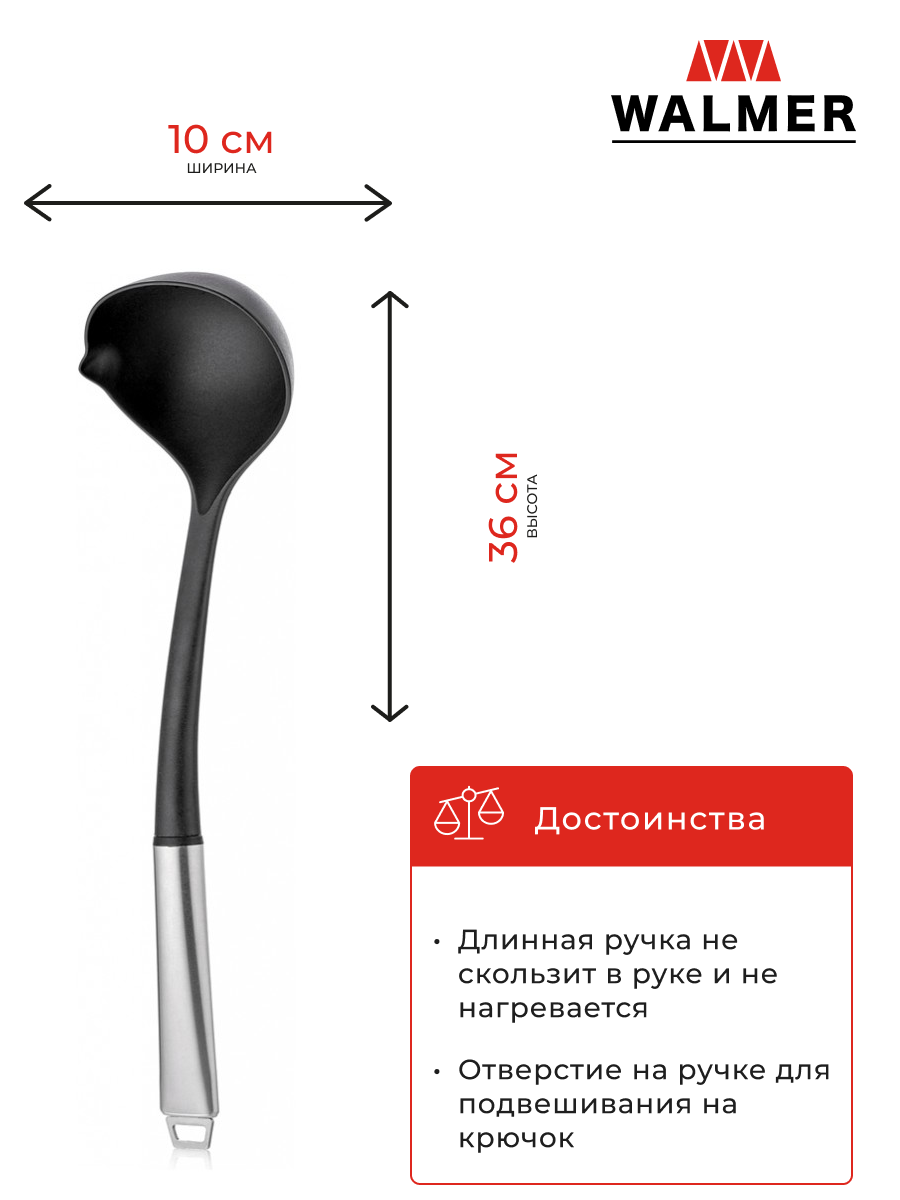 | Дополнительная информация | Половник WALMER Home Chef W30027038, нейлон/нержавеющая сталь черный |