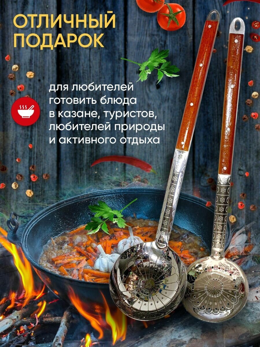 10 цен на Набор 2 пр. для плова для шурпы (половник 60 см, шумовка 65 см) для большого казана из нержавеющей стали с деревянными ручками