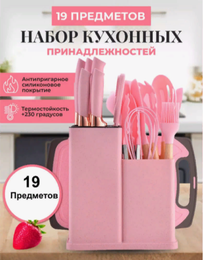 10 цен на Набор кухонной навески, 19 предметов (розовый)