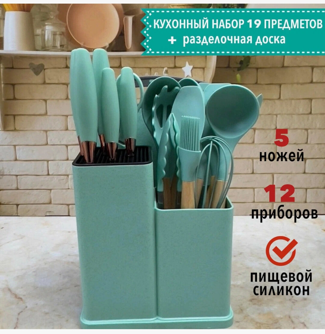 Отзывы на Набор кухонных предметов оливковый/ кухонный набор / кухонные принадлежности / кухонная навеска / комплект для кухни / 19 предметов