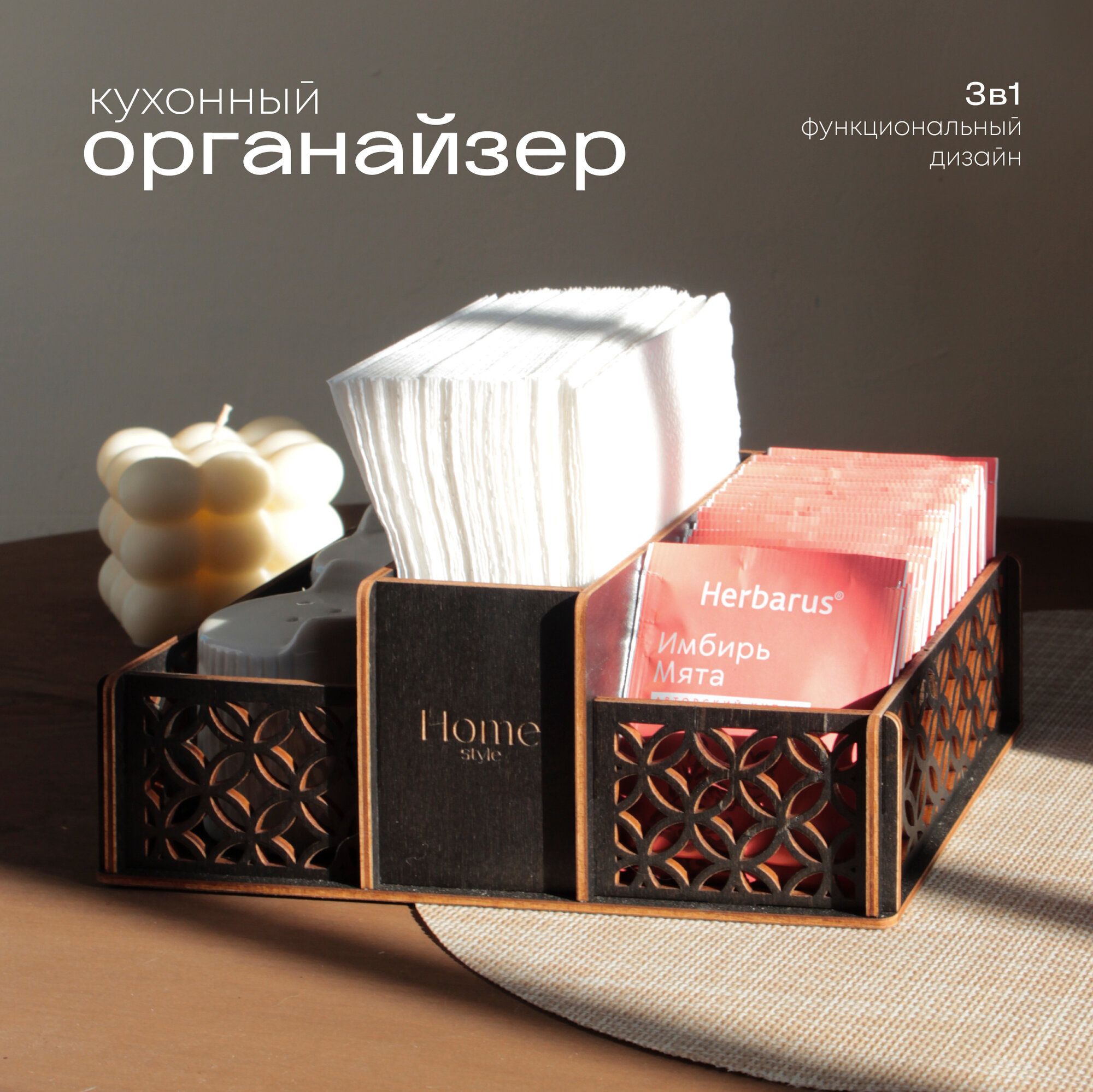 Отзывы на Салфетница деревянная, кухонный органайзер Solyanica, органайзер для чайных пакетиков и специй, цвет чёрный