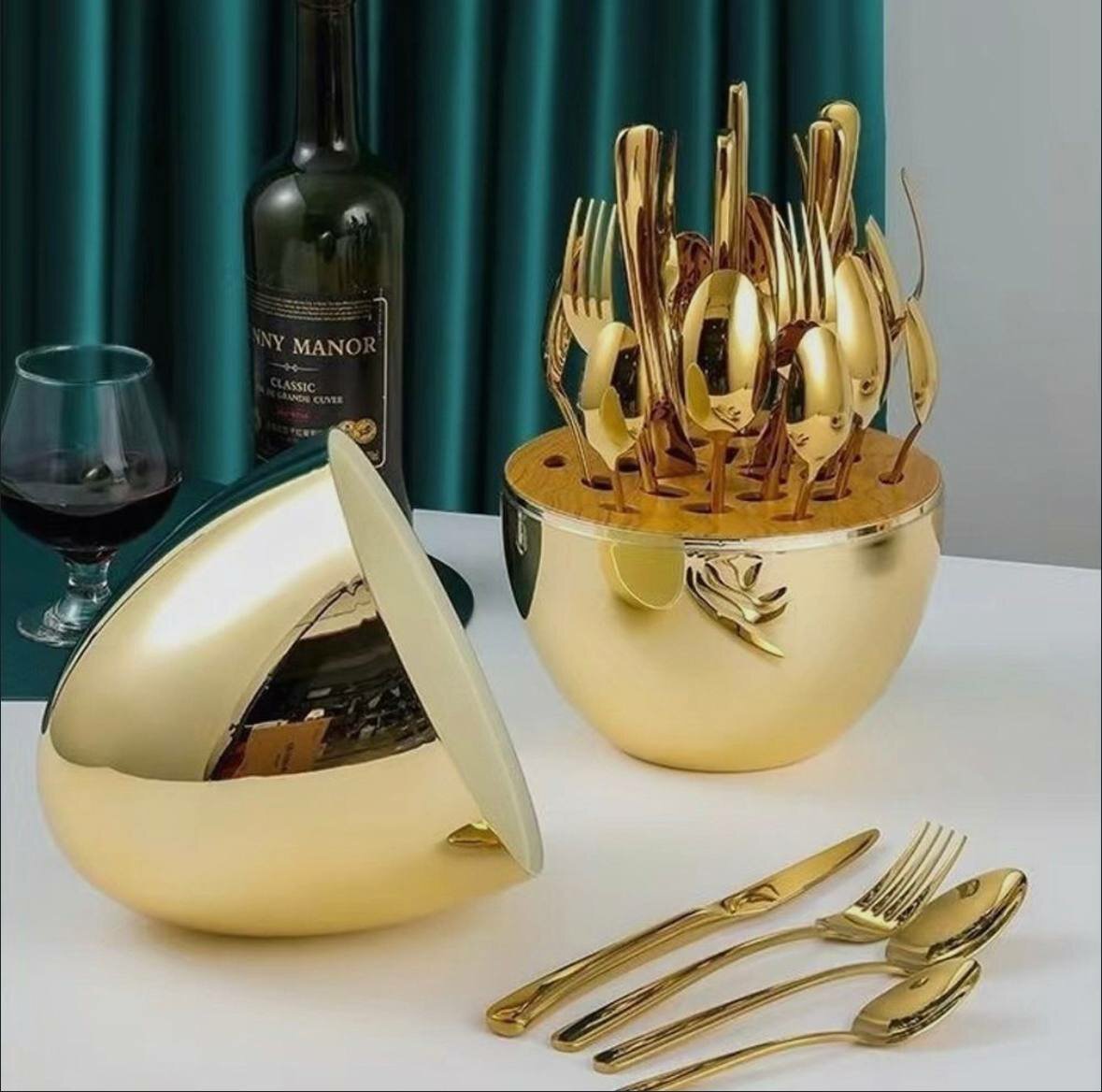 10 цен на Набор столовых приборов Araqel в форме яйца 24 предмета на 6 персон (золото)