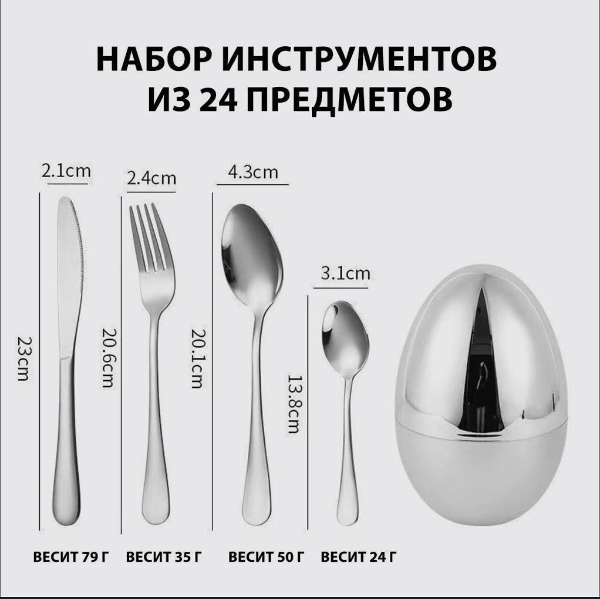 Отзывы на Набор столовых приборов Araqel в форме яйца 24 предмета на 6 персон (золото)