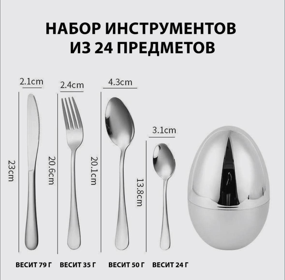 10 цен на Набор столовых приборов Araqel в форме яйца 24 предмета на 6 персон (серебро)