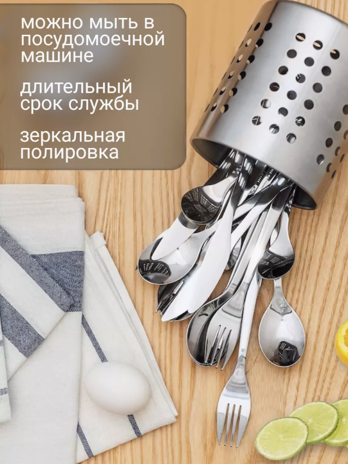 | Дополнительная информация | ля сервировки стола; набор ложек вилок ножей для кухни; кухонные принадлежности; нож в комплекте; разрешено для посудомоечной машины; нержавеющая сталь; столовая сталь; пищевая сталь машины |