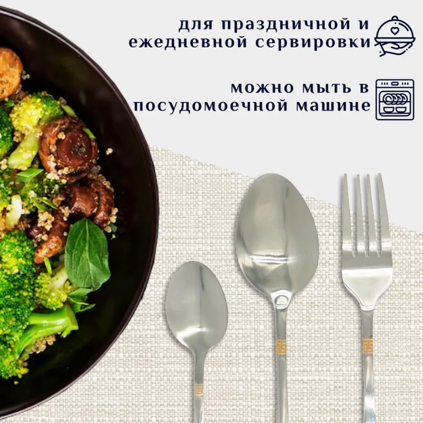 | В набор входит | чайная ложка, столовая ложка, нож, вилка. |