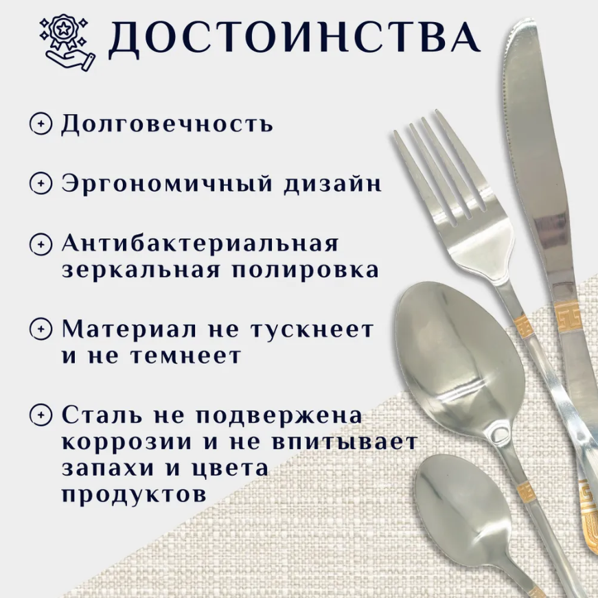 Отзывы на Набор столовых приборов 4в1 с рисунком "Версаче" на 6 персон, 24 шт