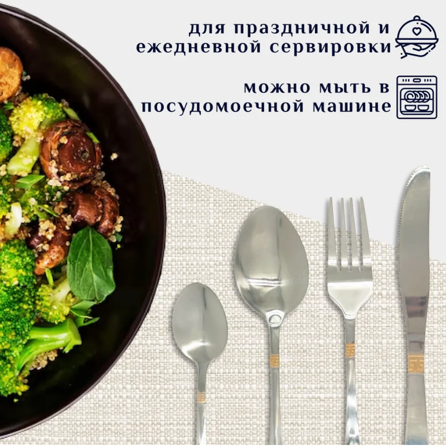 | В набор входит | чайная ложка, столовая ложка, нож, вилка. |