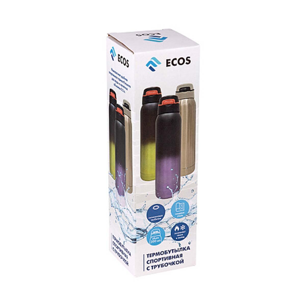 Термобутылка спортивная с трубочкой Ecos, объём: 500 мл, цвет: фиолетовый градиент 959 ₽