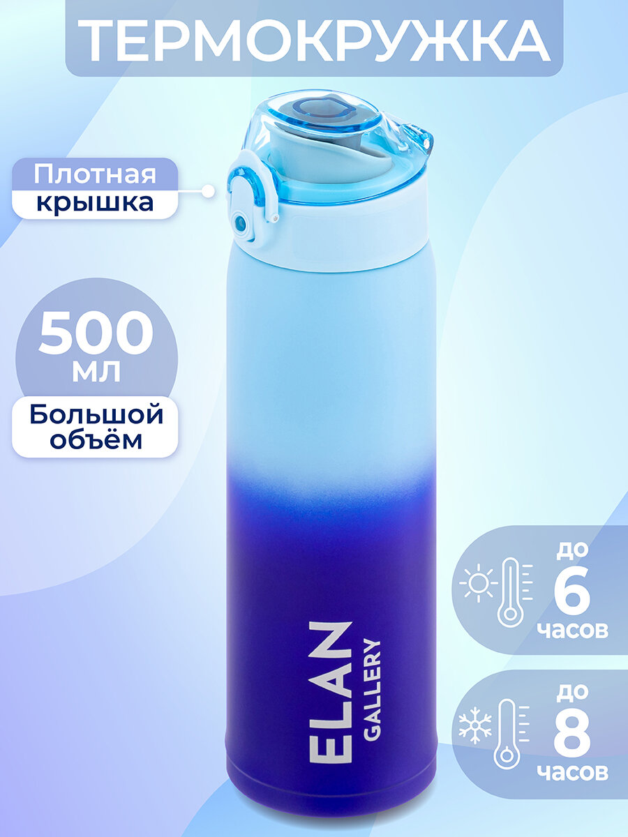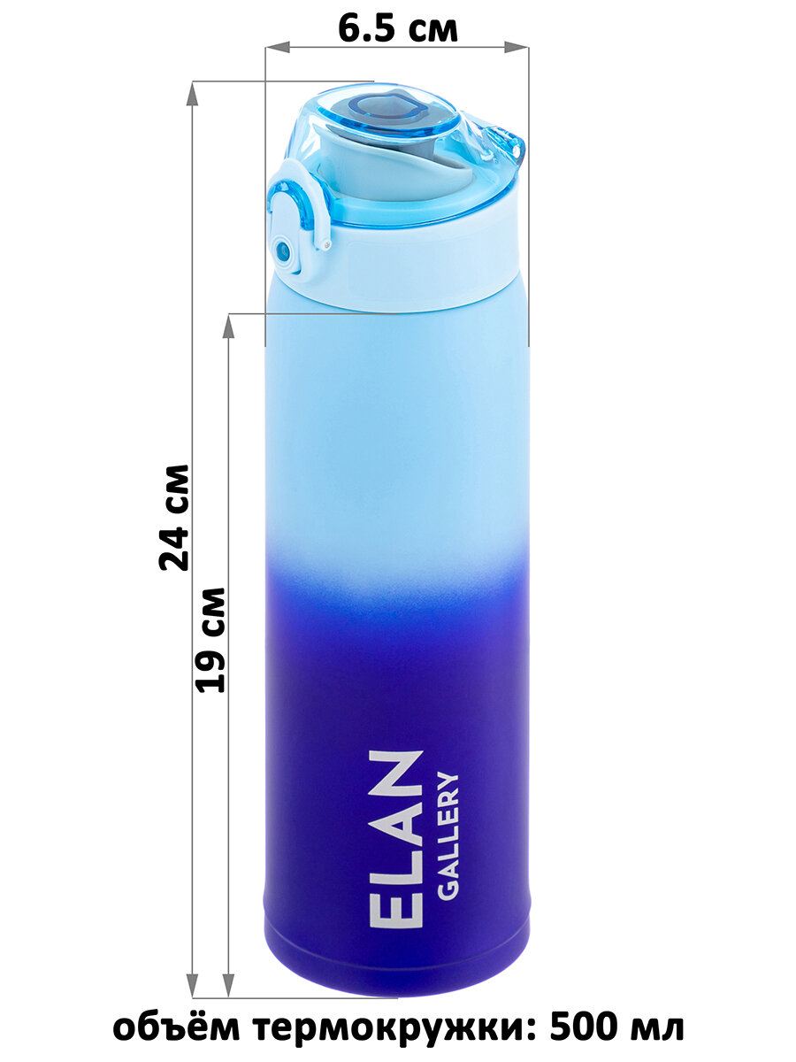 Термокружка для чая/ кофе 500 мл Elan Gallery Сине-голубая 6,5х6,5х24 см информация: