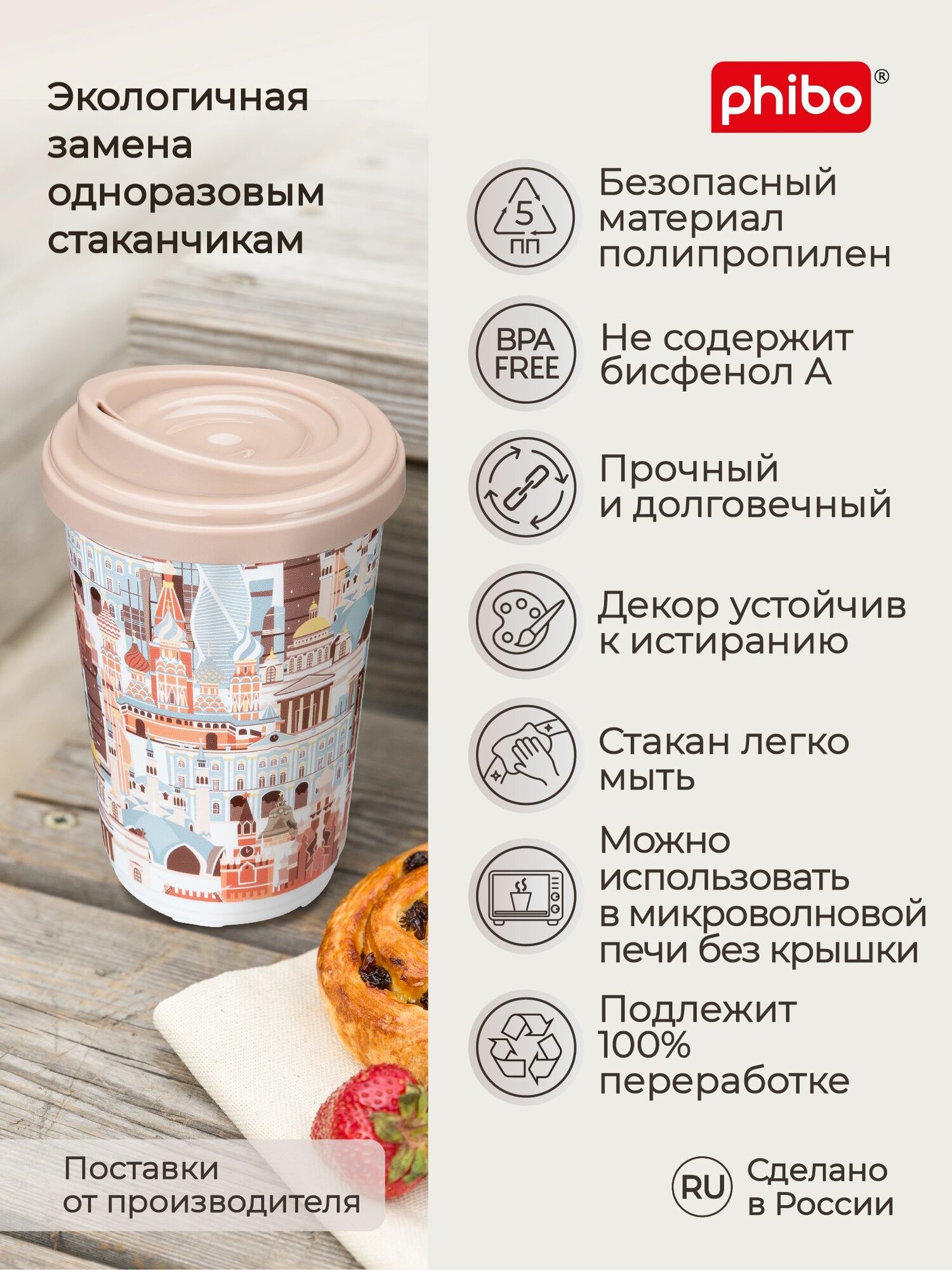Термостакан с декором Москва 400 мл, бежевый информация: