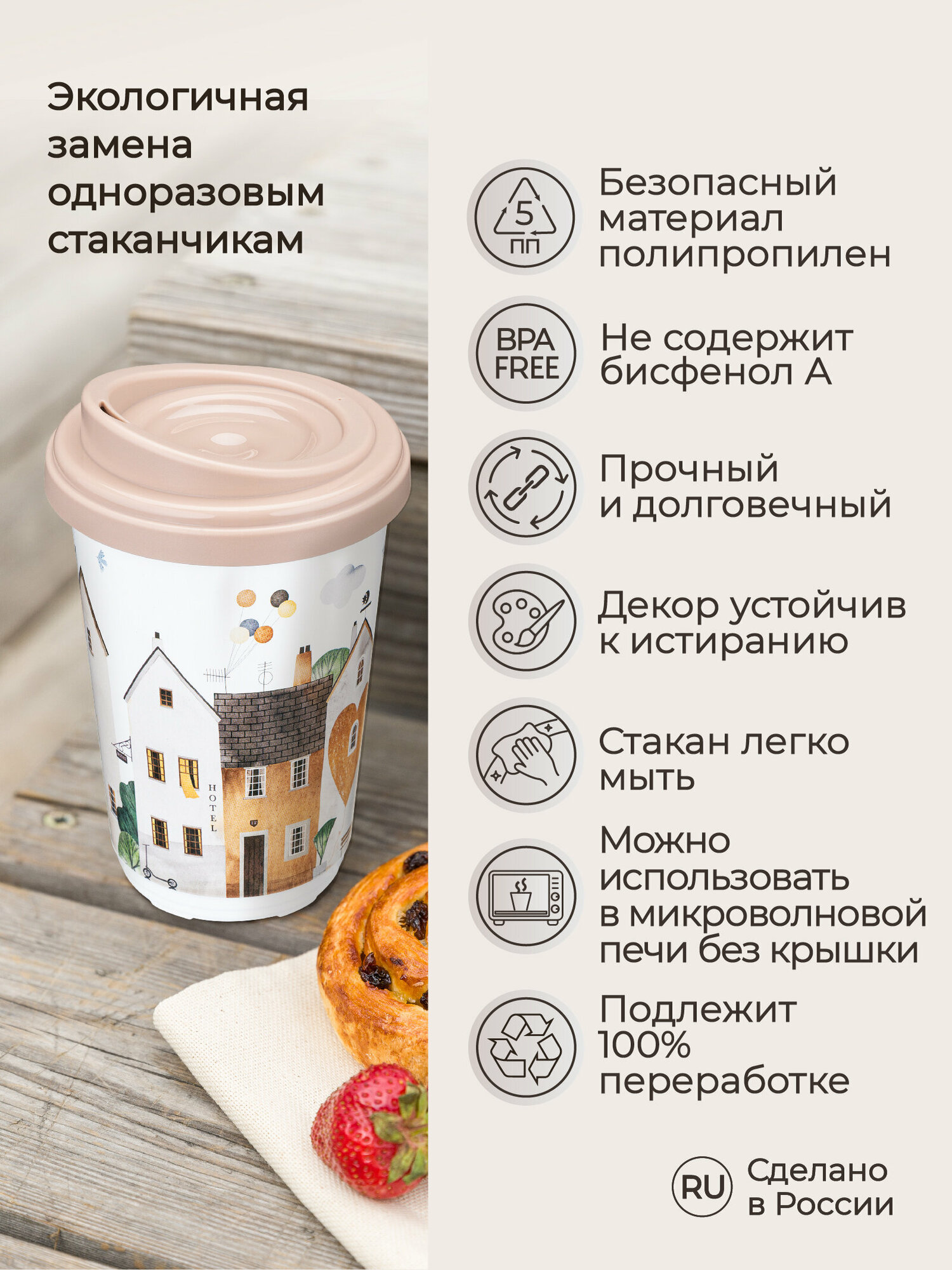 10 цен на Термостакан с декором Домики 400 мл, темно-бежевый