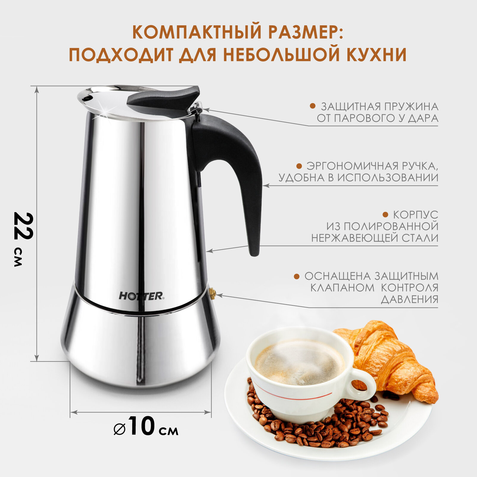 10 цен на Гейзерная кофеварка Hotter HX-450, 450 мл , подходит для всех видов плит