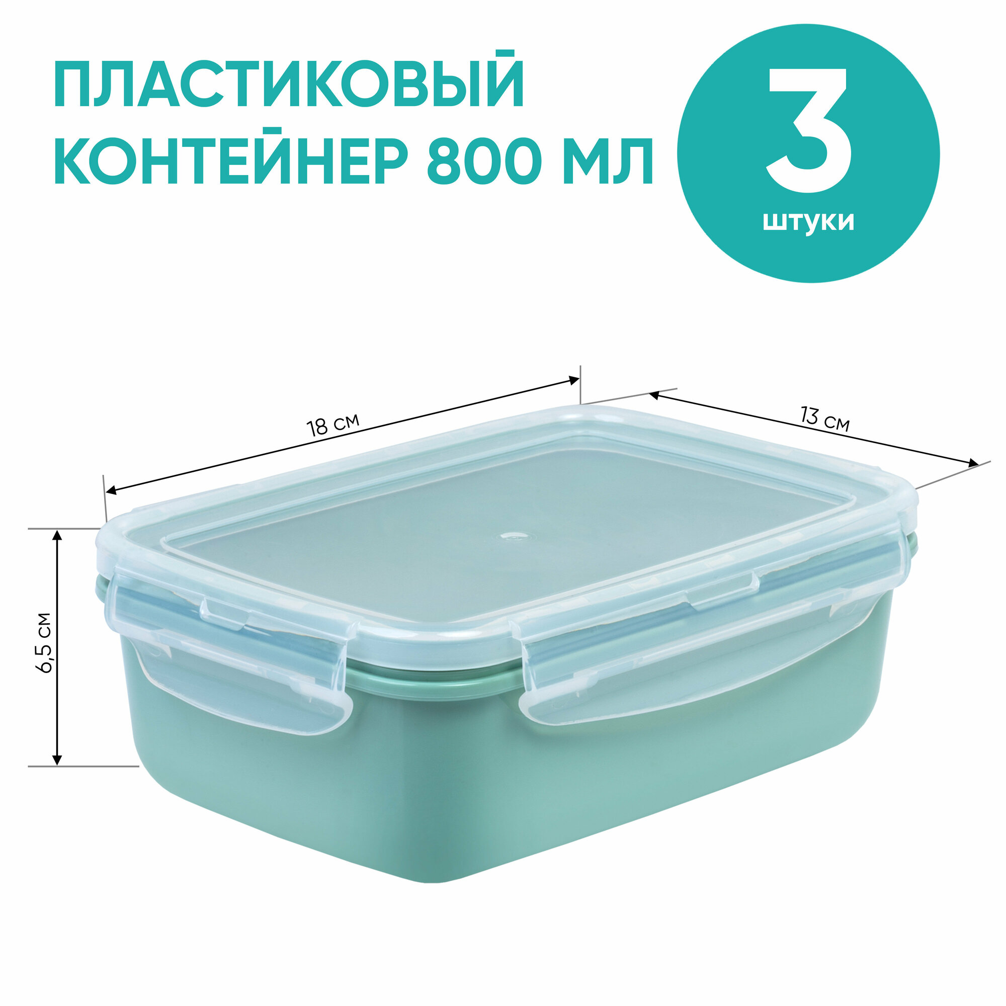 10 цен на FSYA039 Контейнеры для еды YUDELI 800 мл, 3 шт, цвет фисташковый, герметичные ланч-боксы с крышками на защелках
