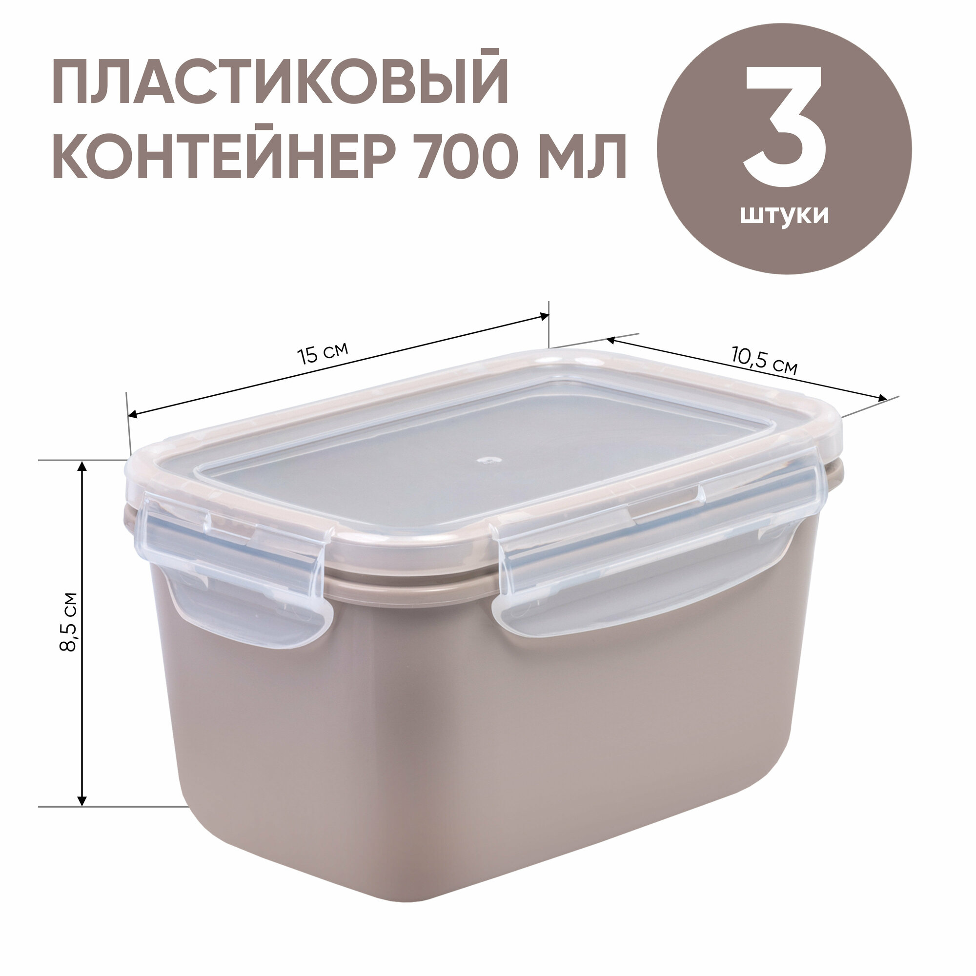 10 цен на FSYA044 Контейнеры для еды YUDELI 700 мл, 3 шт, цвет капучино, герметичные ланч-боксы с крышками на защелках