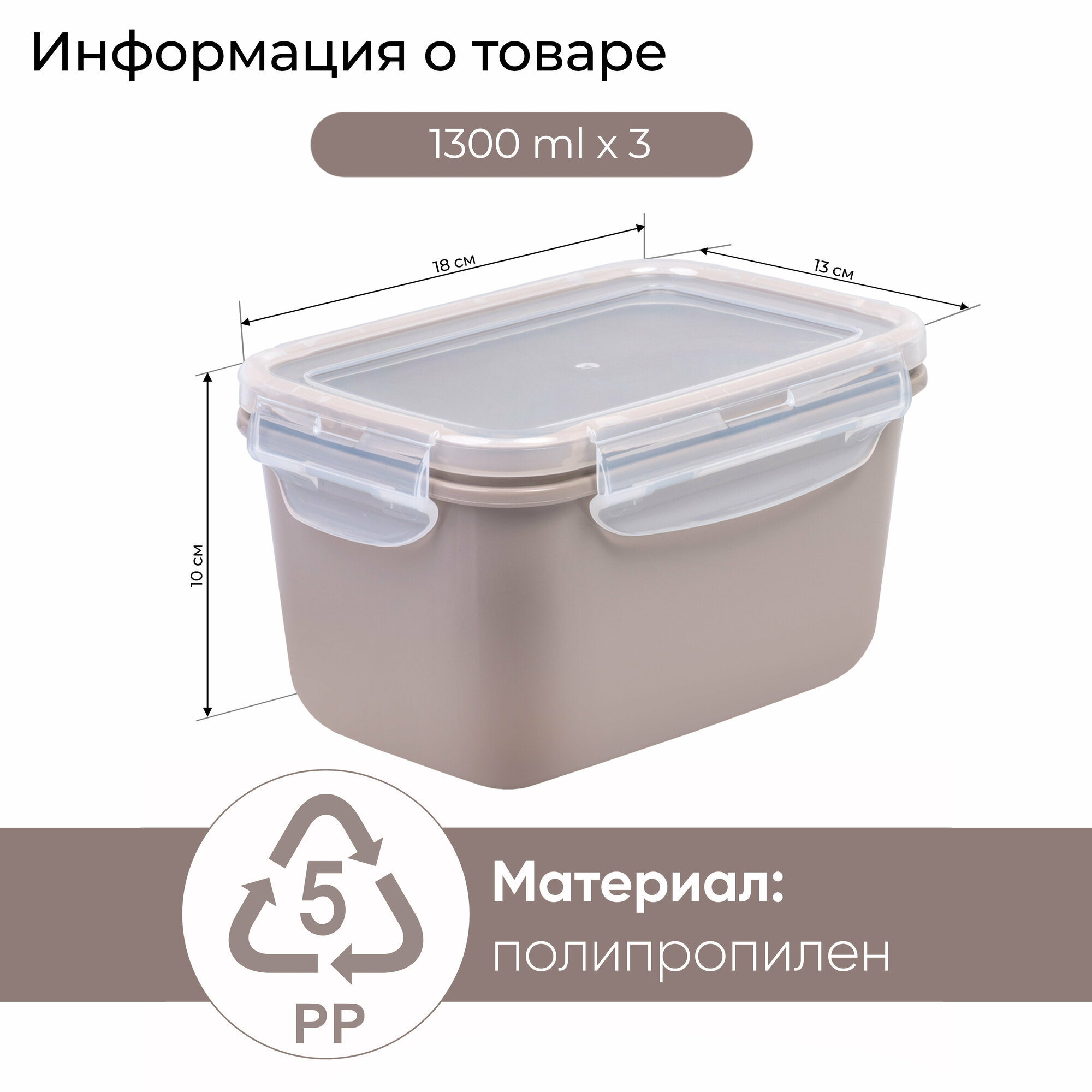 10 цен на FSYA046 Контейнеры для еды YUDELI 1300 мл, 3 шт, цвет капучино, герметичные ланч-боксы с крышками на защелках