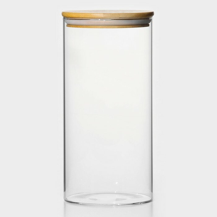 Банка стеклянная для сыпучих продуктов с бамбуковой крышкой BellaTenero «Эко», 900 мл, 8,5×20,5 см 470 ₽