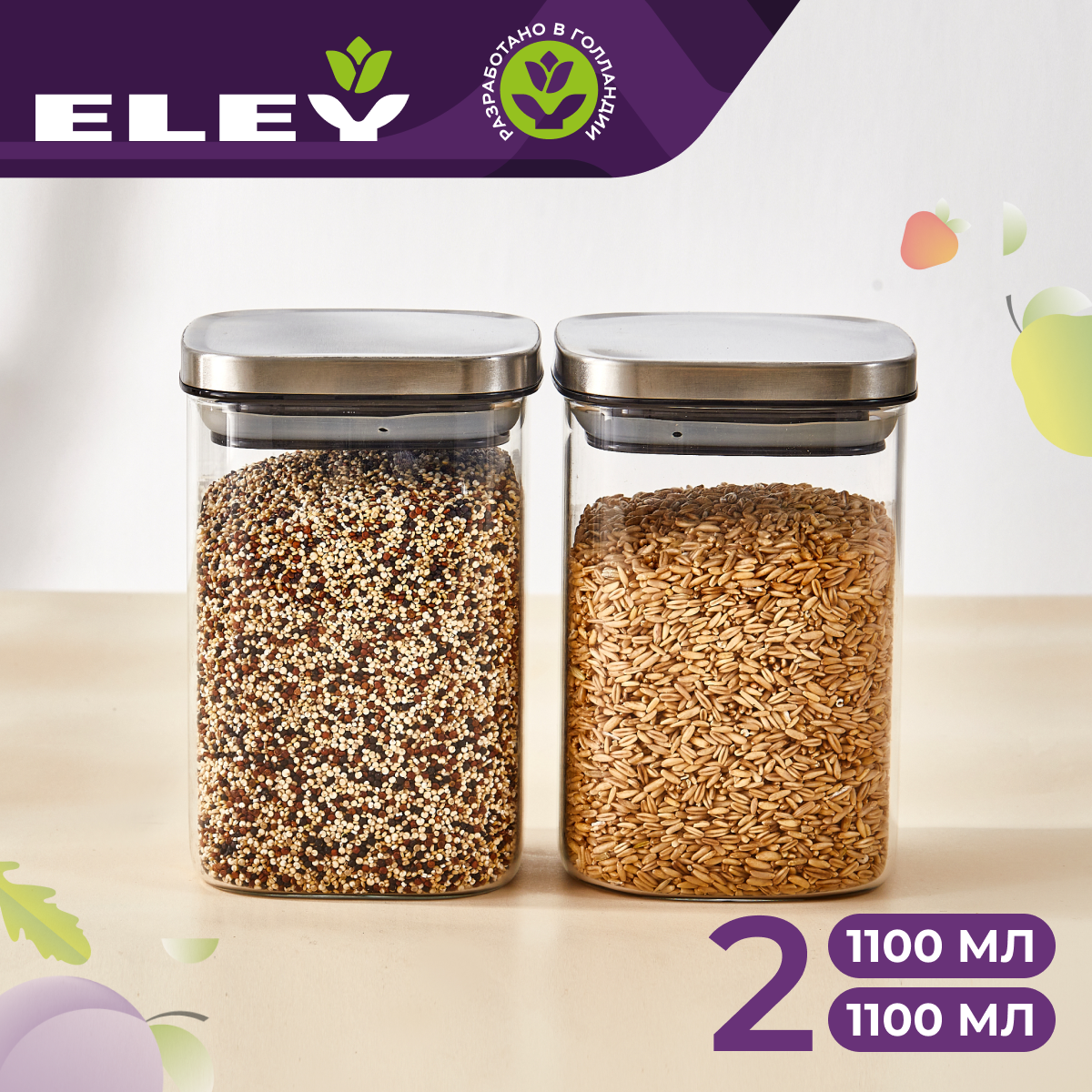 Отзывы на Набор из 2х стеклянных банок для хранения еды или сыпучих продуктов Eley 1100мл