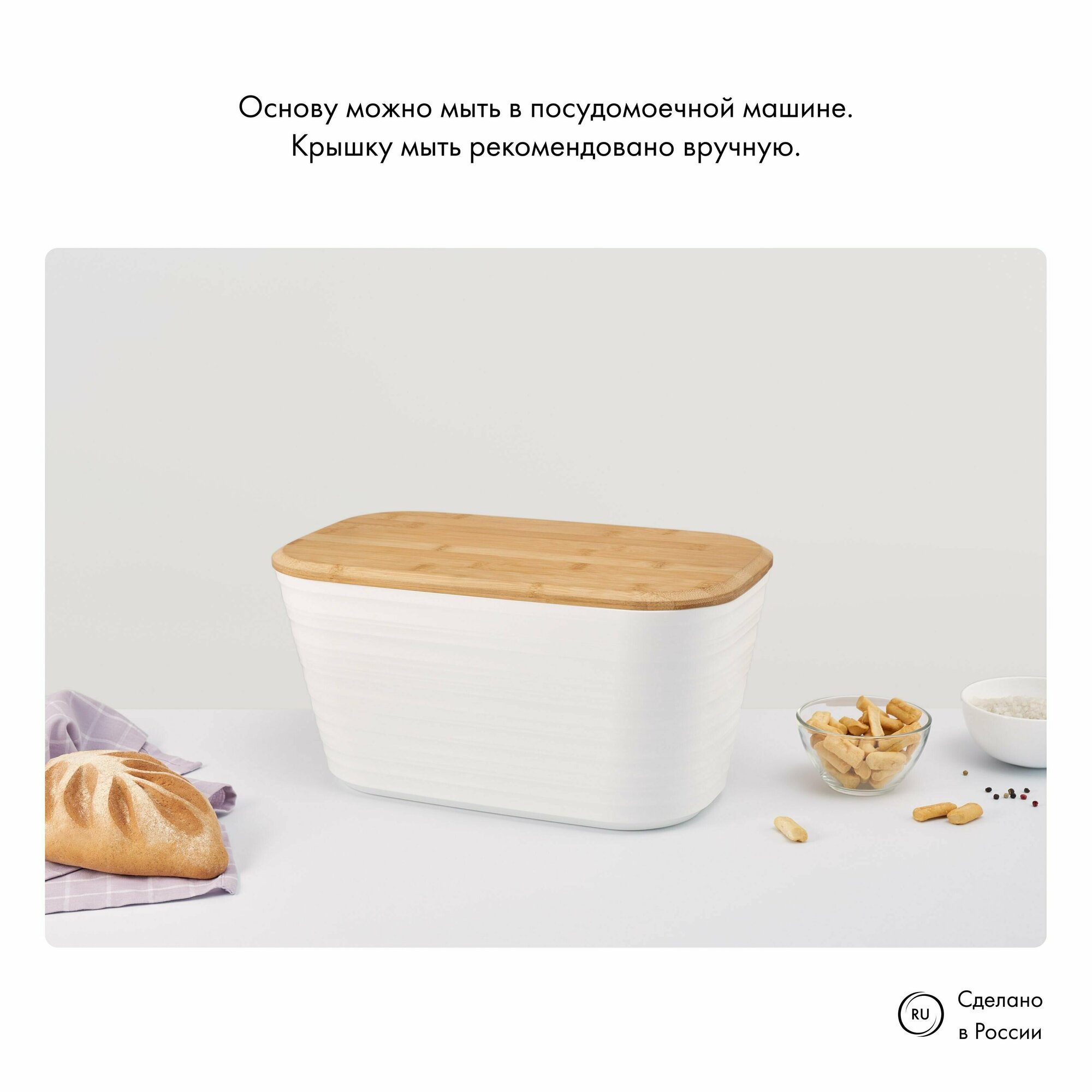 Отзывы на Хлебница ambient Prime с бамбуковой крышкой 395х225х205 мм молочно-белая