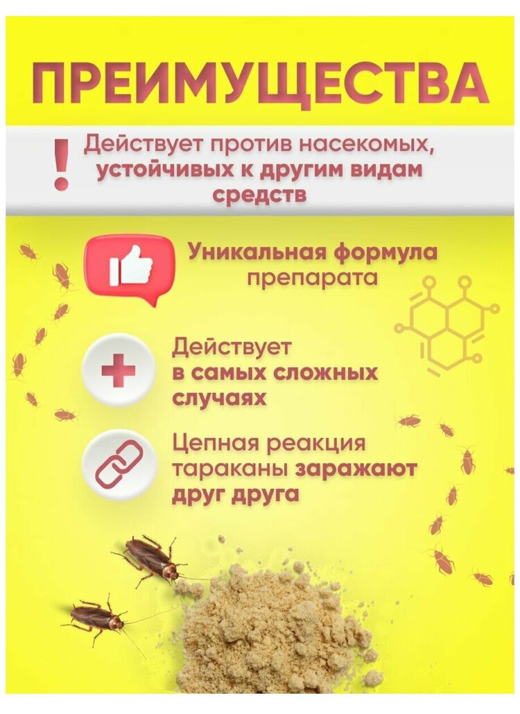 | Способ применения | Порошок равномерным слоем рассыпают в местах высокого скопления и передвижения тараканов. Допускается использовать препарат в жидком виде, опрыскав им проблемные участки, или приготовить из густой субстанции шарики, которые разложить по укромным и потаенным уголкам. |
