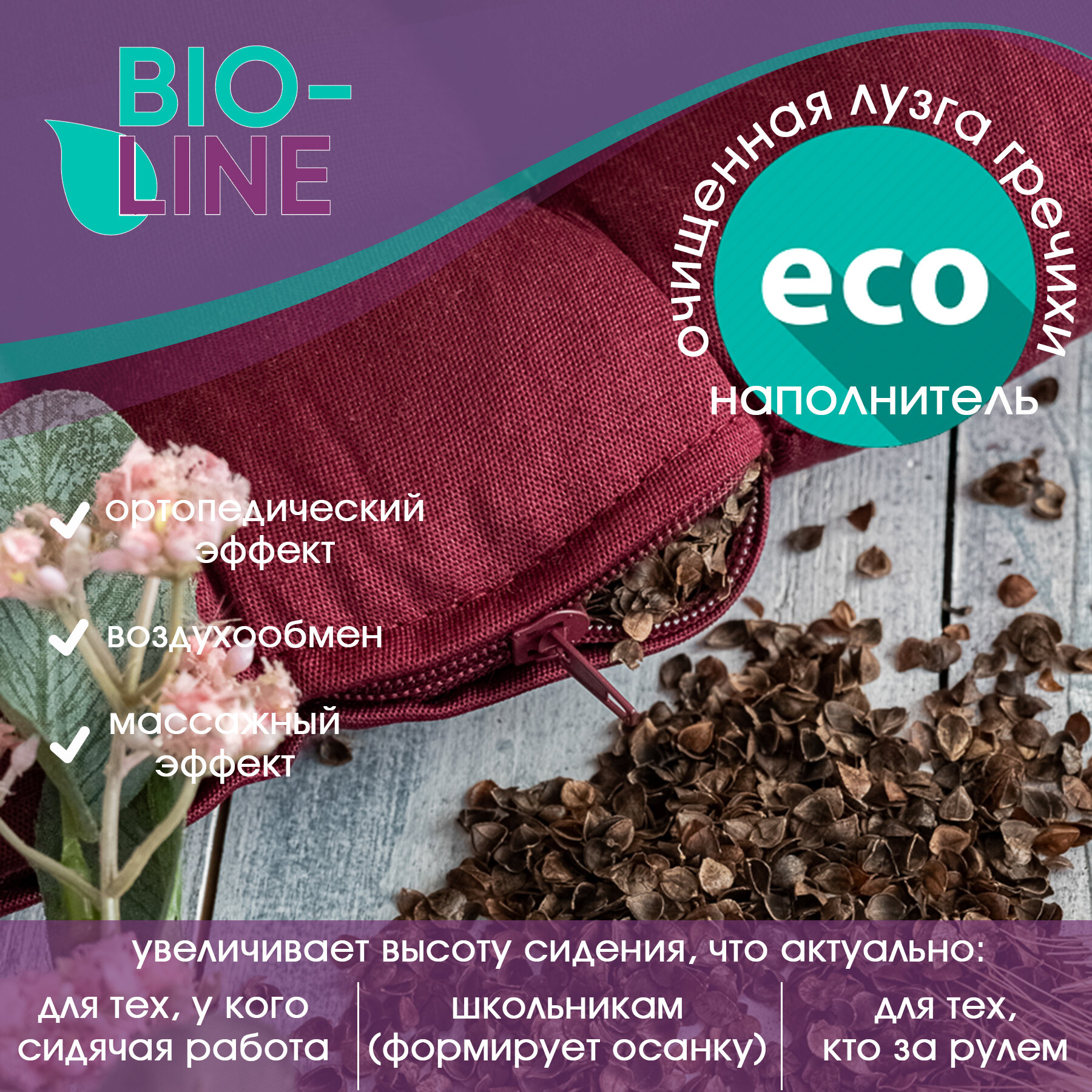 Отзывы на Подушка на стул ортопедическая с лузгой гречихи Bio-Line ,для кресла,в автомобиль,для школьника,40х40 см, бордовый