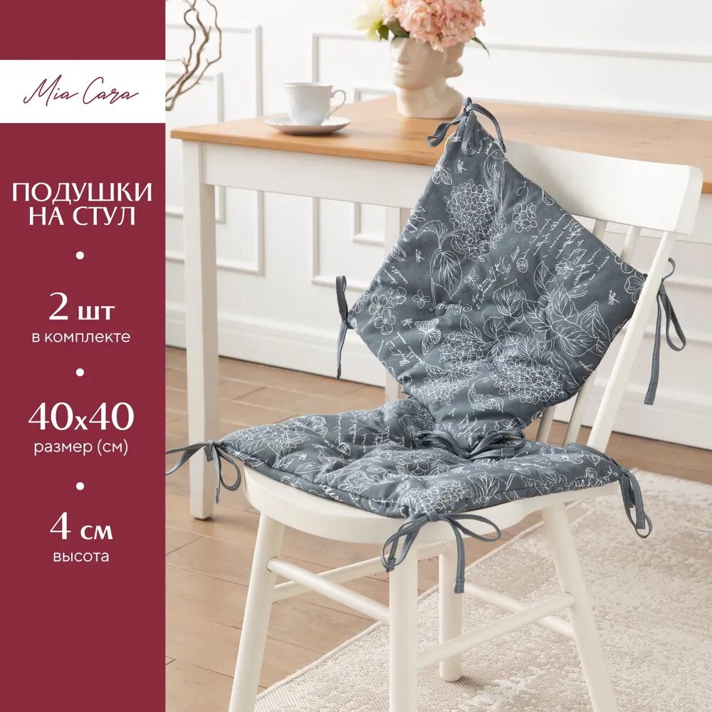 10 цен на Комплект подушек на стул плоских 40х40 (2 шт) "Mia Cara" рис 30284-11 Жозефина графит