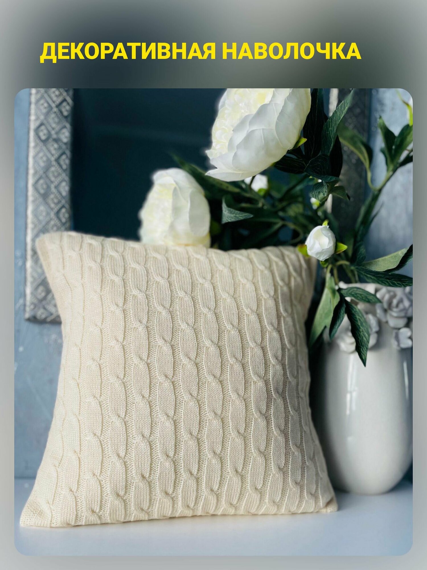 10 цен на Наволочка декоративная, вязаная, 40Х40, цвет молочный, 1 шт