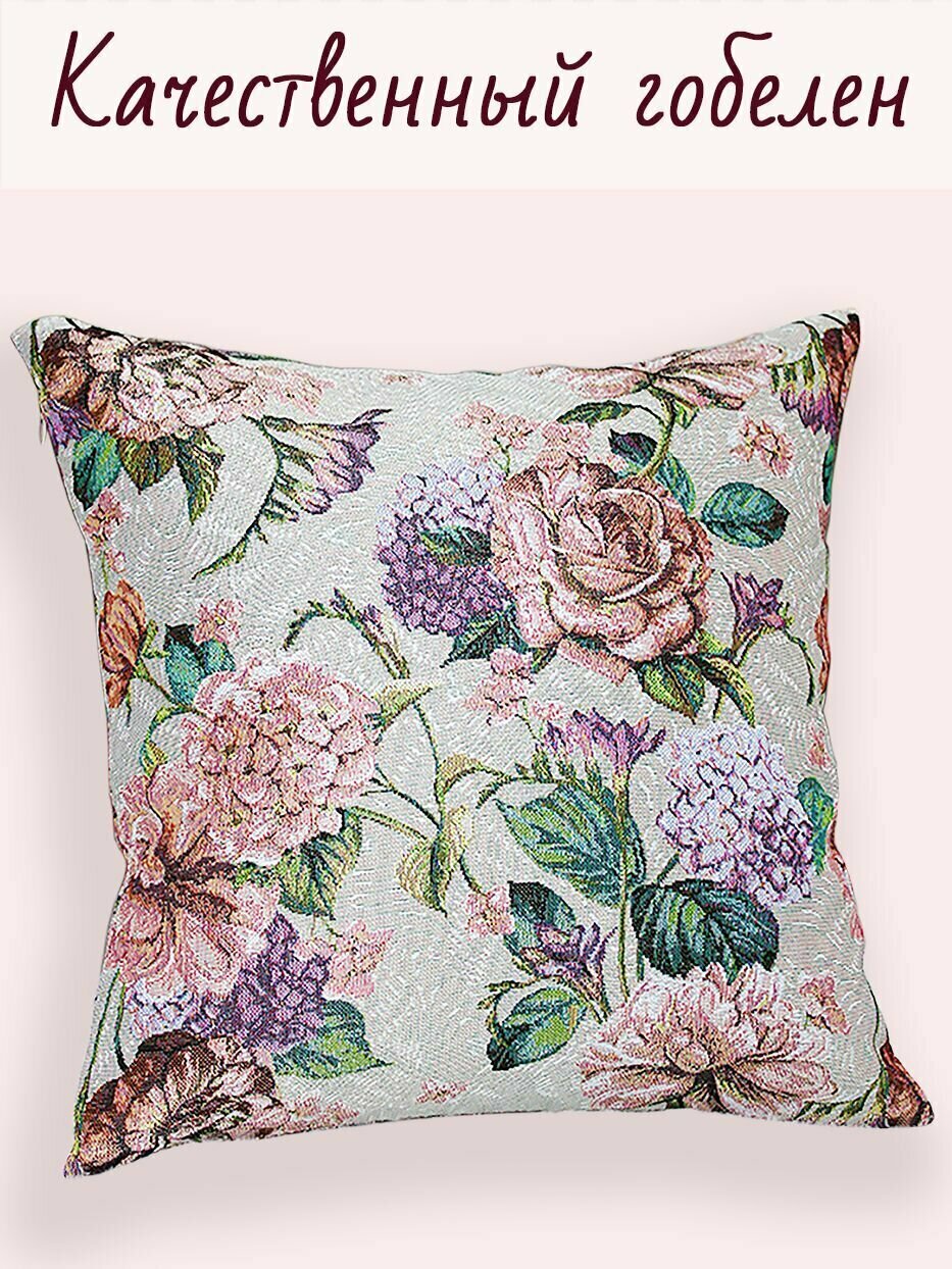 Наволочка декоративная чехол на подушку на молнии 40х40 см, двусторонняя на молнии 1 шт/Пион информация: