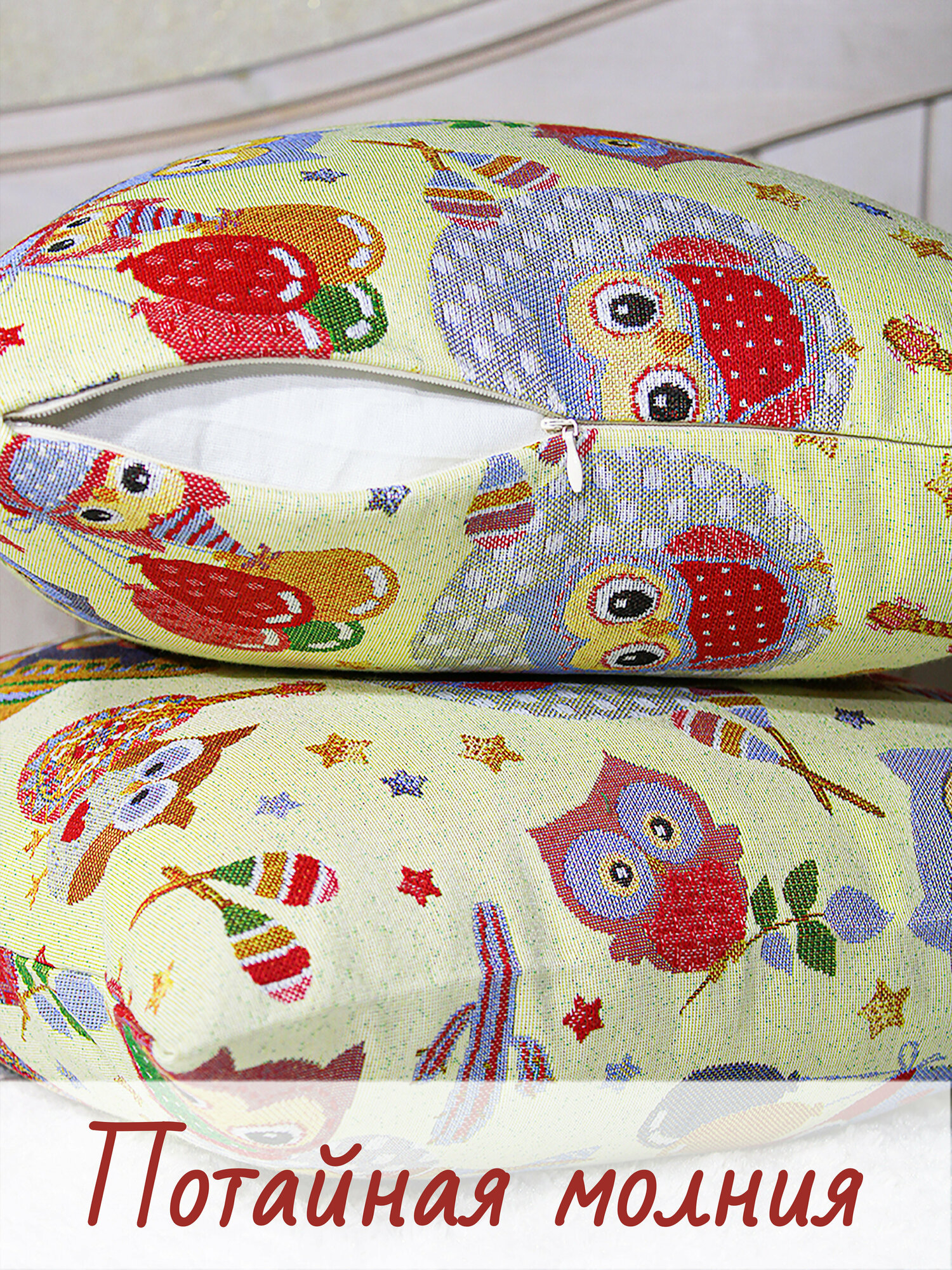 Отзывы на Наволочка декоративная чехол на подушку на молнии 40х40 см, двусторонняя на молнии 1 шт/Совы