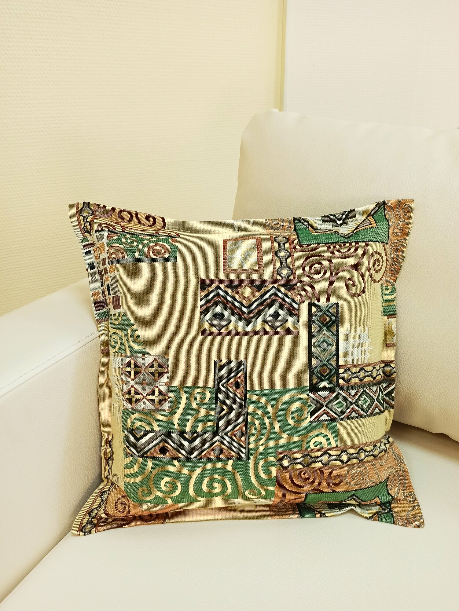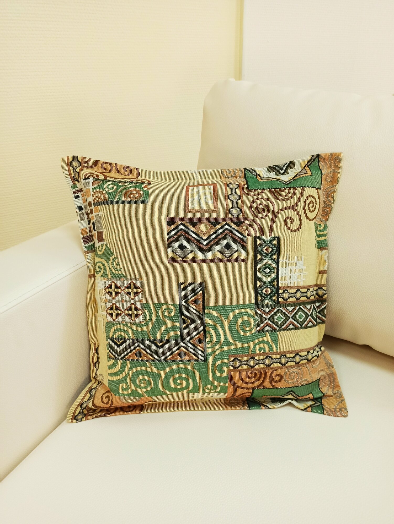 Декоративная наволочка "Кружева" Гобелен Коллаж, бежево-зеленый, размер 45х45 см 558 ₽
