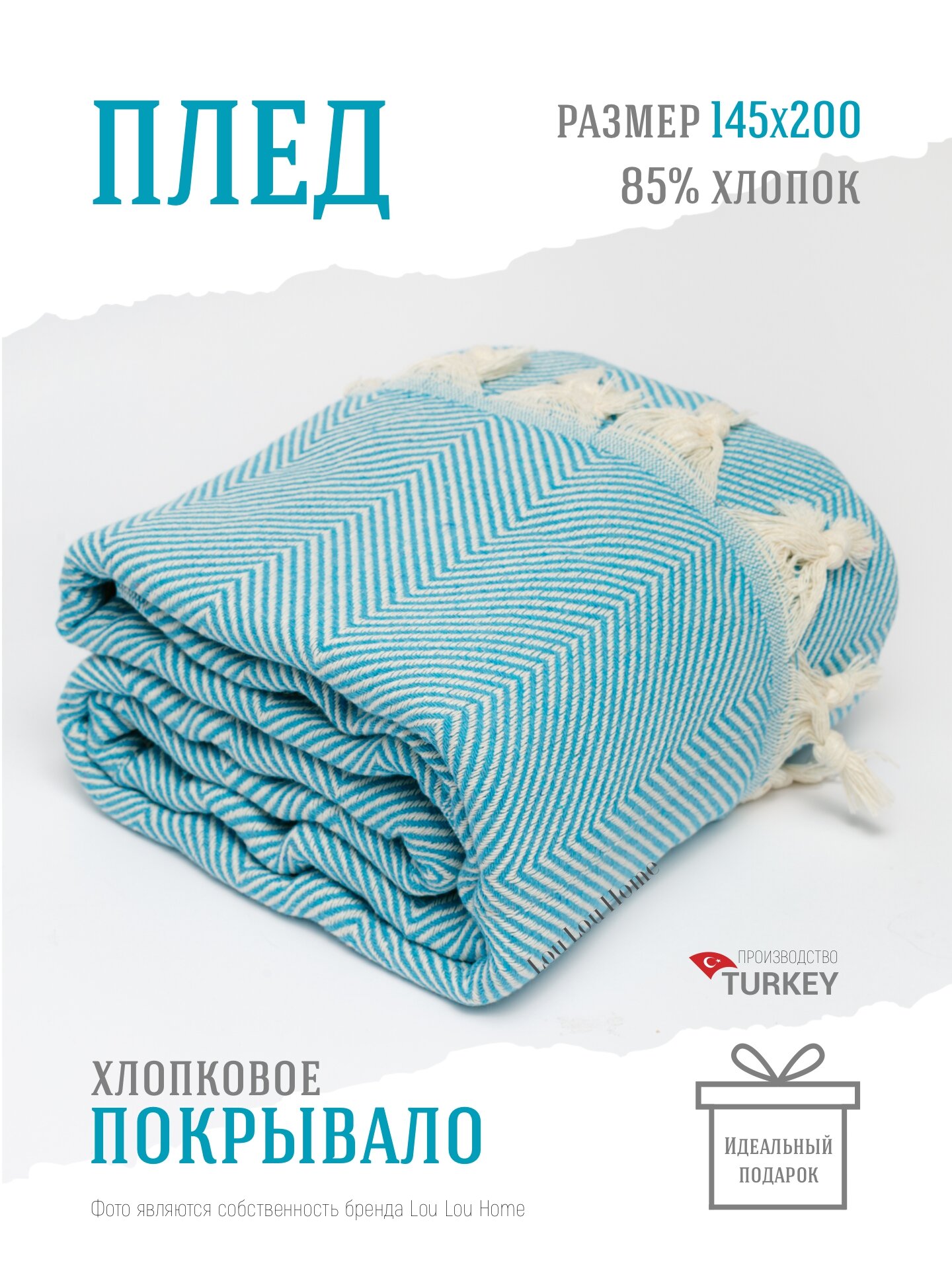 Покрывало-плед Lou Lou Home "Сканди", двухстороннее, 200х145 см, бирюзовый