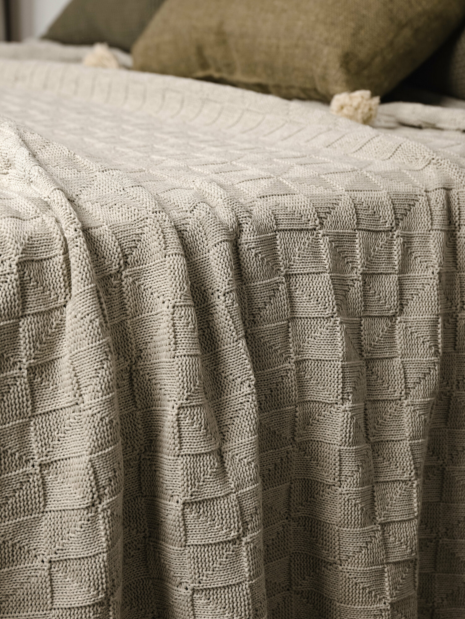 Плед 220х240, вязаный, покрывало на кровать, на диван, светло-бежевый, KING PLAID, Хлопок 100%, в подарочной сумке информация: