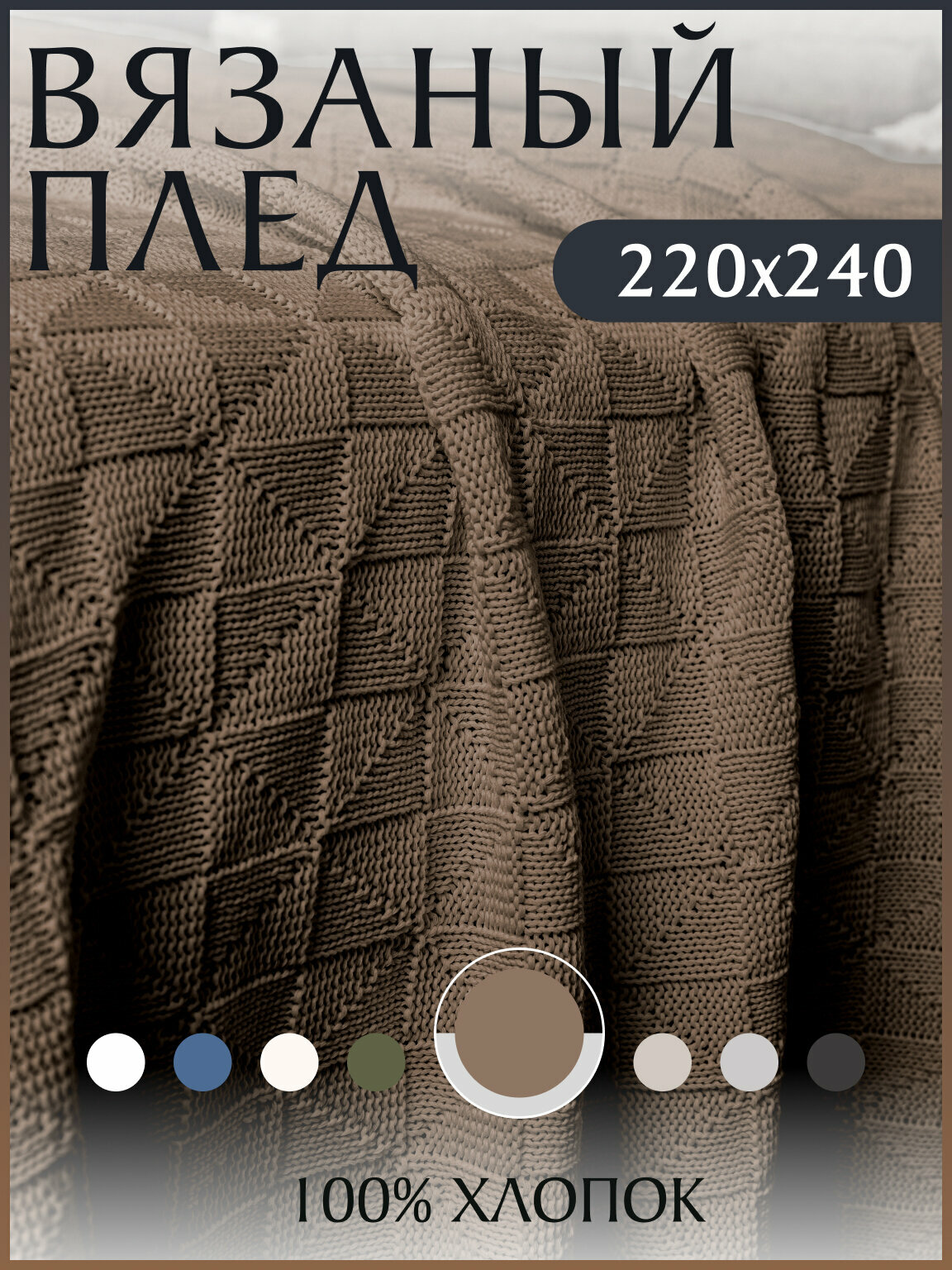 Отзывы на Плед 220х240, вязаный, покрывало на кровать, на диван, бежевый, KING PLAID, Хлопок 100%, в подарочной сумке
