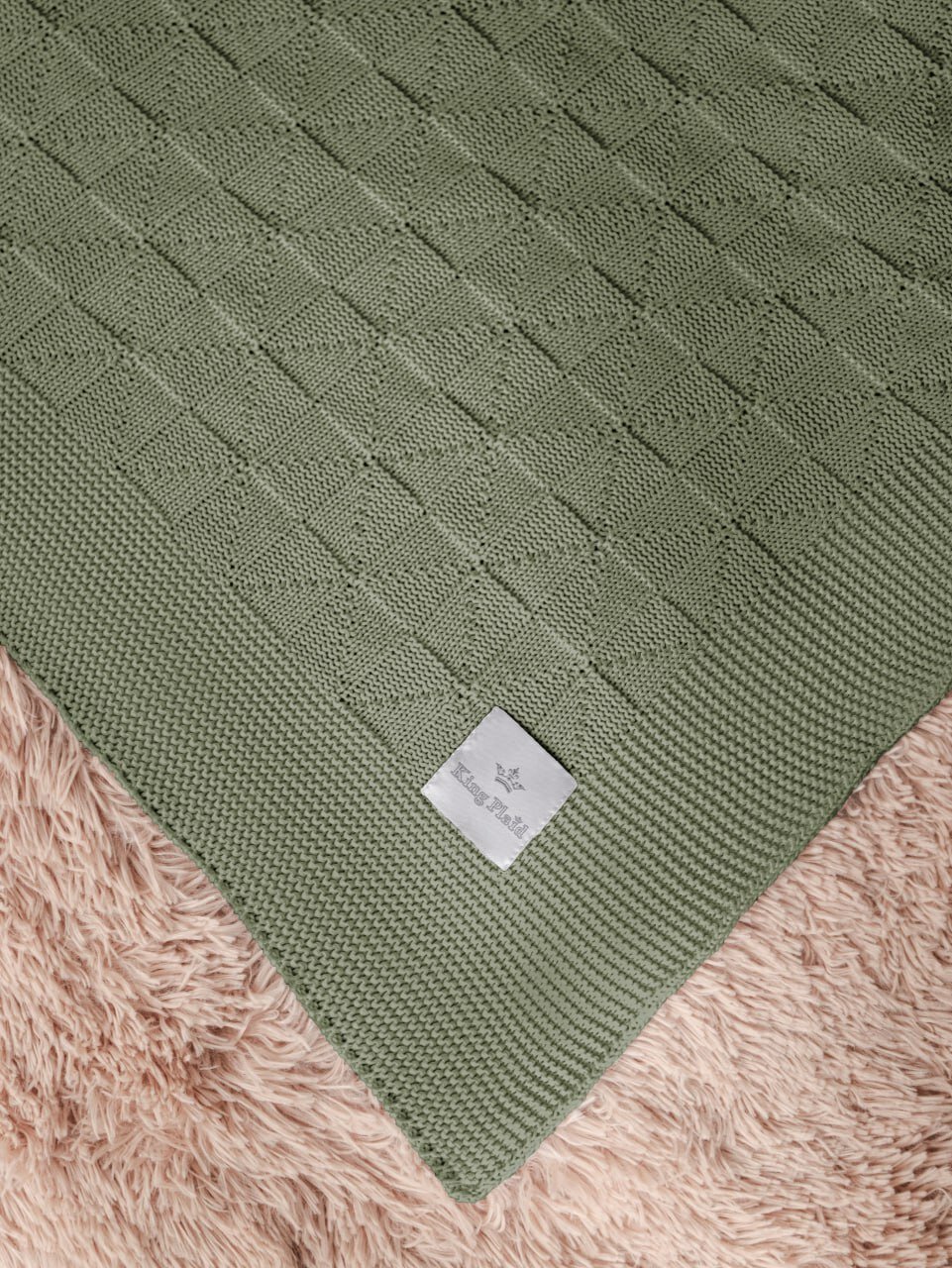 Плед 150х200, детский, на кресло, вязаный, оливковый, покрывало на кровать, на диван, KING PLAID, Хлопок 100%, в подарочной сумке информация: