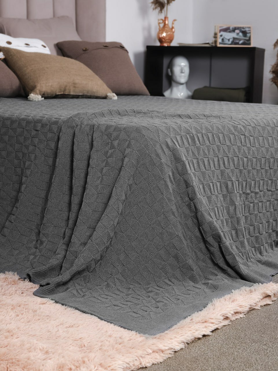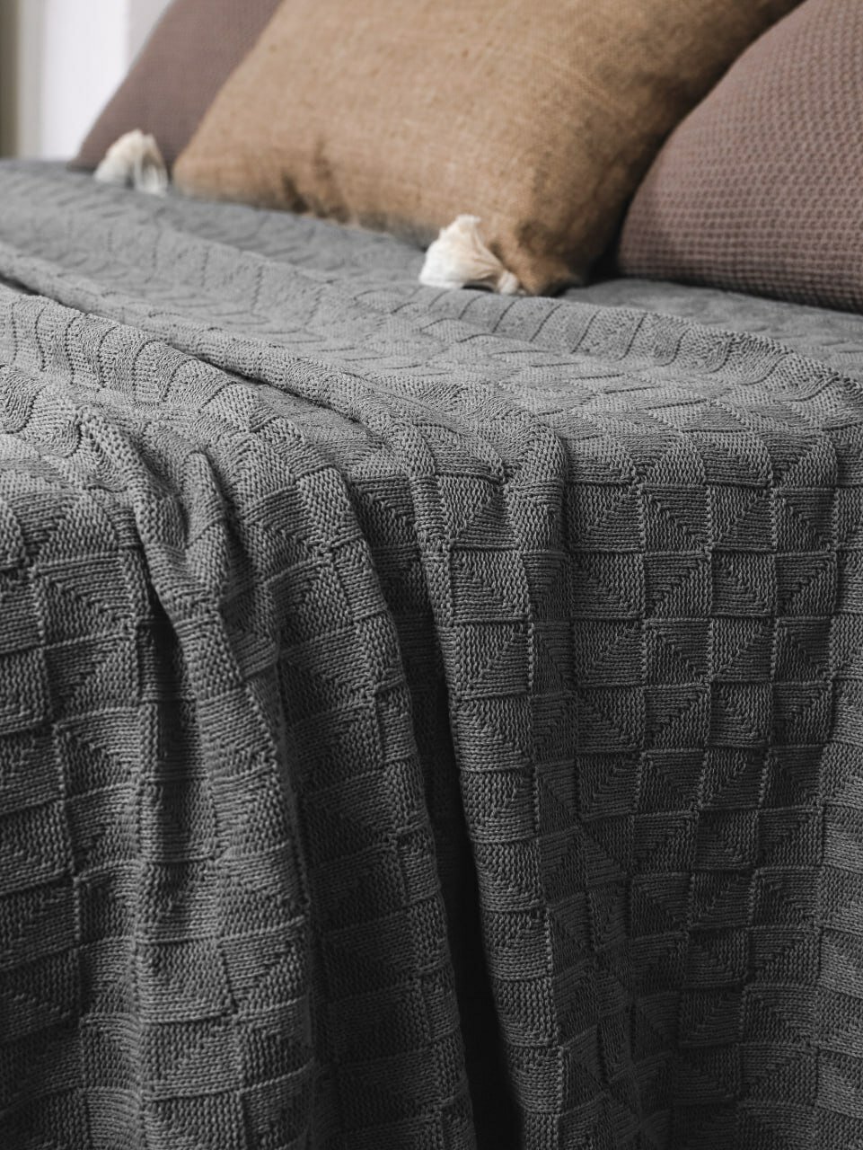 Плед 220х240, вязаный, покрывало на кровать, на диван, темно-серый, KING PLAID, Хлопок 100%, в подарочной сумке 4 000 ₽
