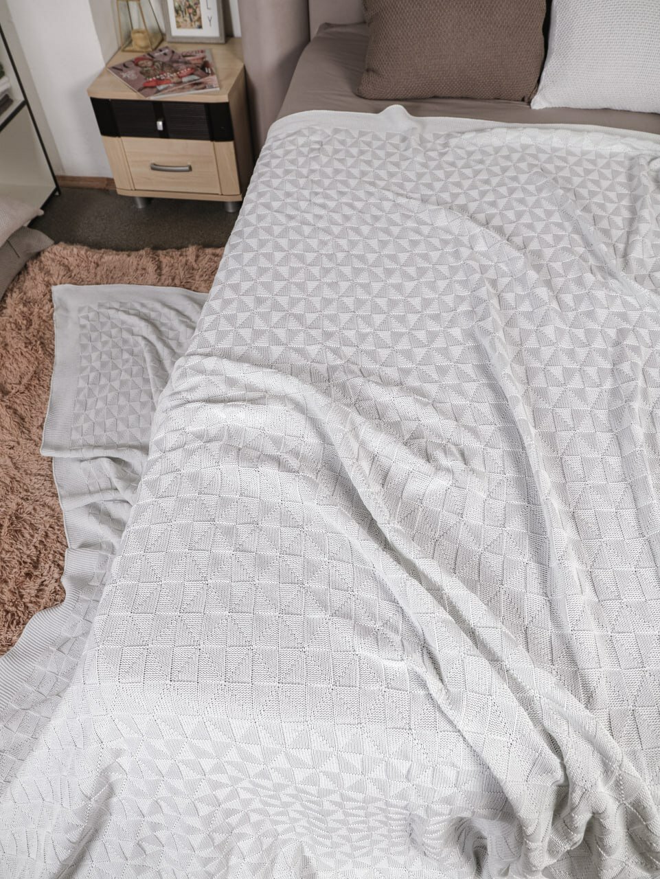Плед 220х240, вязаный, покрывало на кровать, на диван, светло-серый, KING PLAID, Хлопок 100%, в подарочной сумке 4 000 ₽