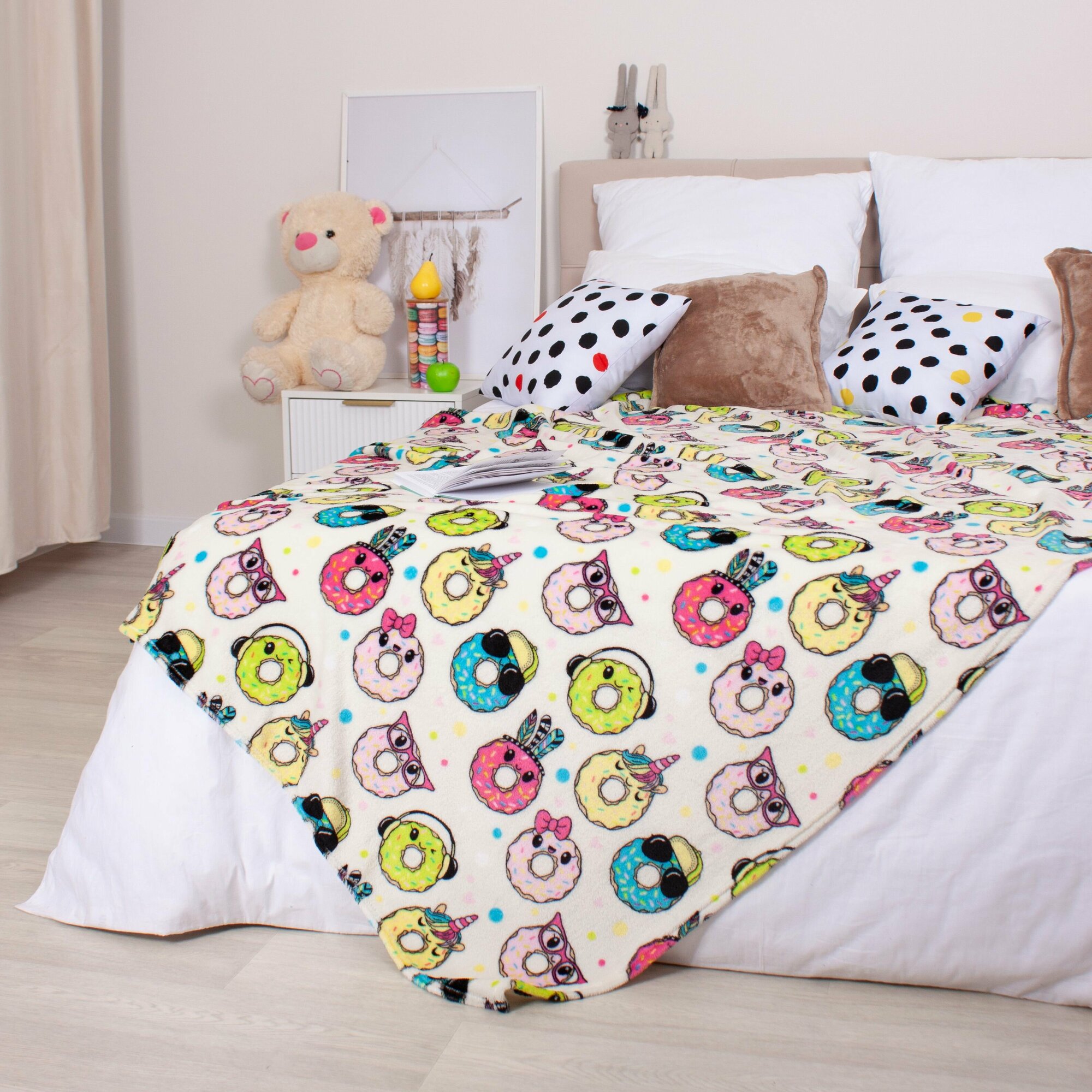 Плед велсофт 160х200 см с принтом, Фестиваль, пончики / молочный 539 ₽