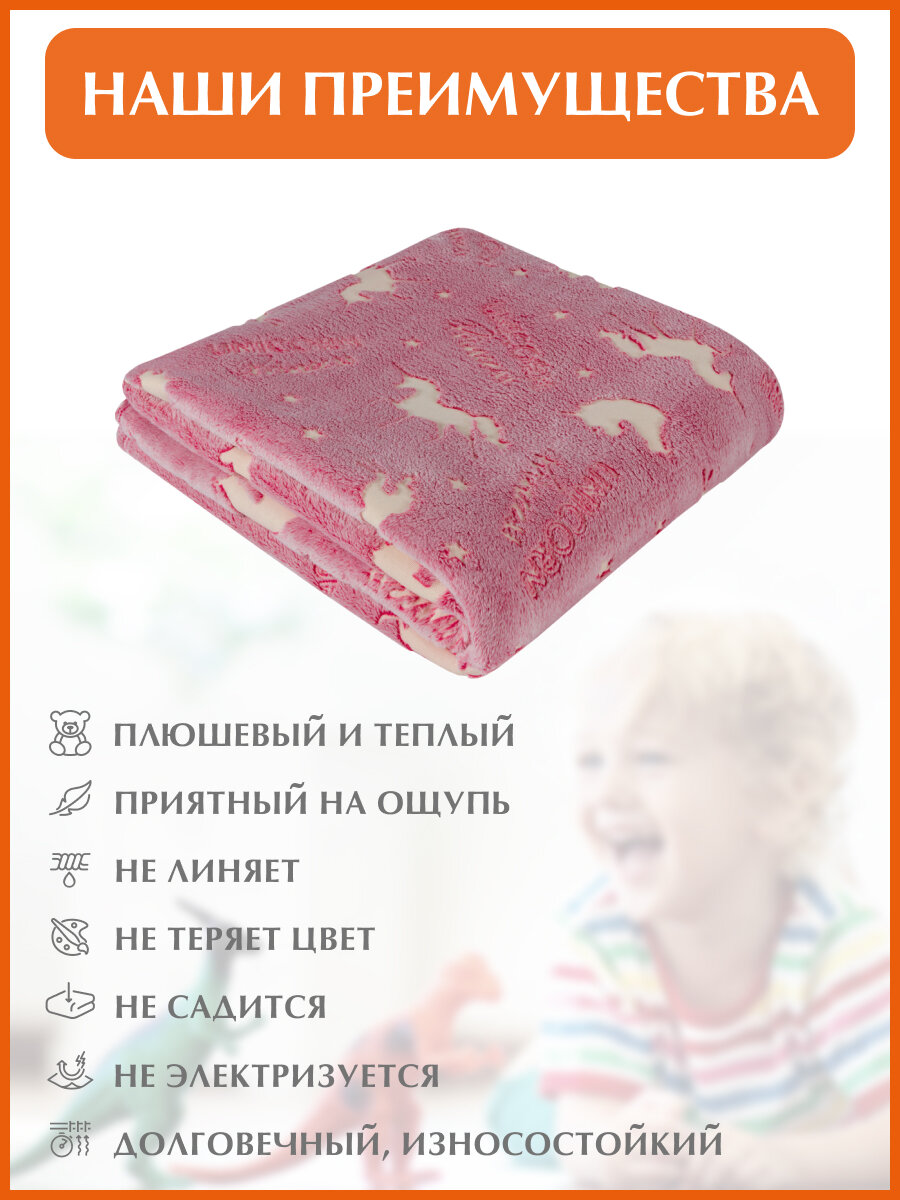 Покрывало (плед) для детей, 150х200, Велсофт, Guten Morgen, Единороги информация: