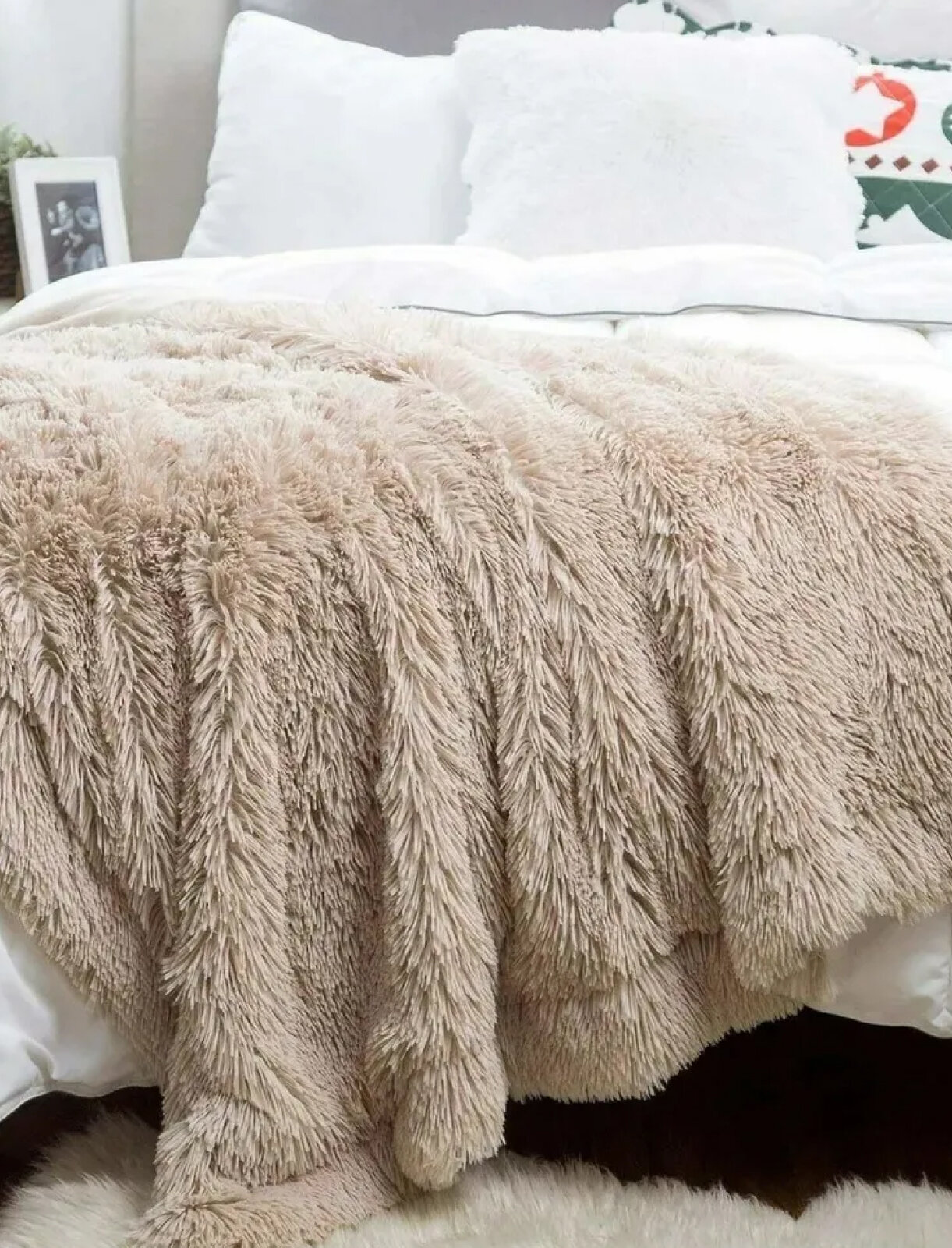 10 цен на Плед "Травка", 200 х 220, Бежевый , с длинным ворсом, искусственный мех