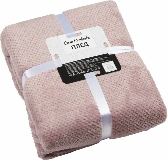 Плед велсофт 160х220 см фактурный однотонный, Casa Conforte Нонна пыльная роза 940 ₽