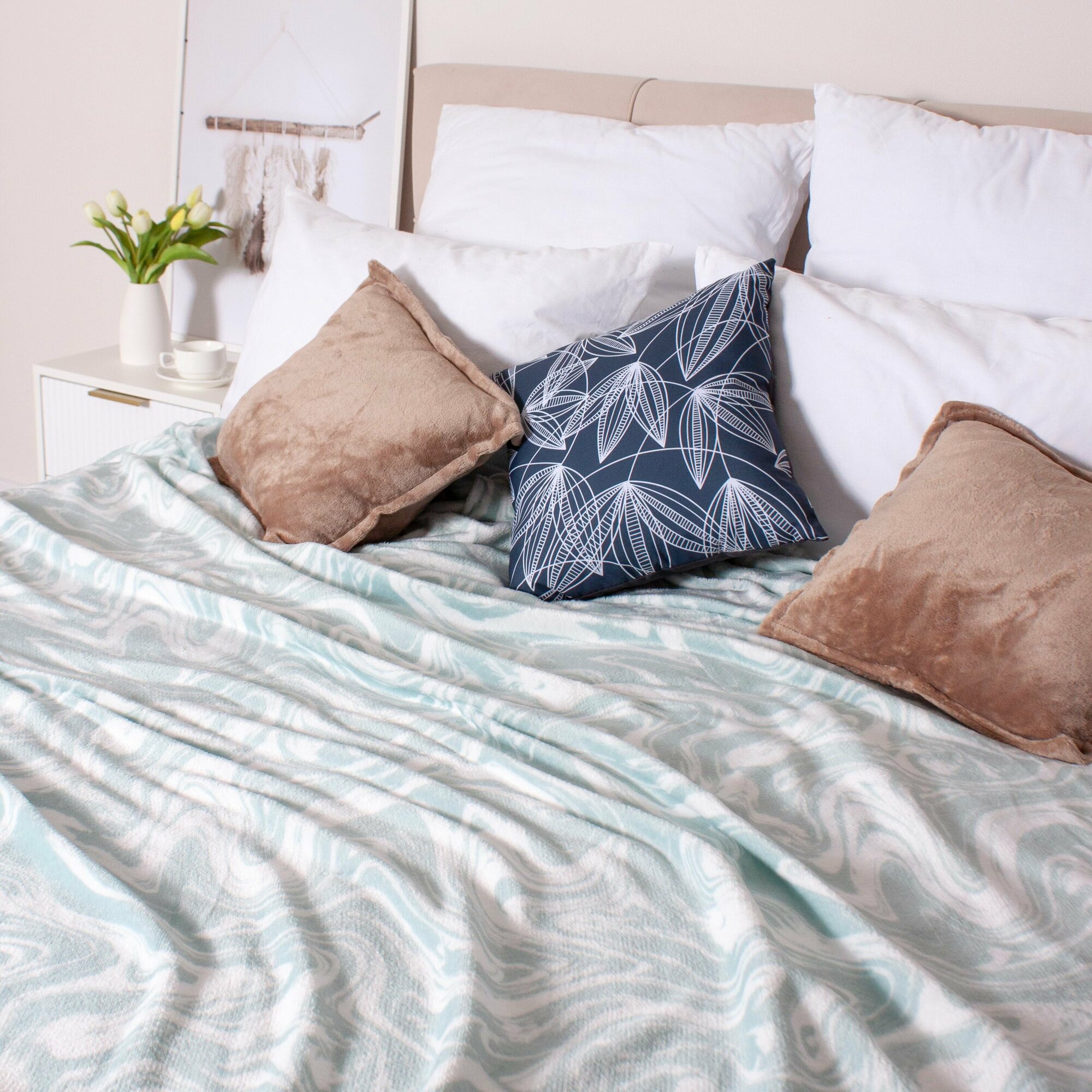 Плед-покрывало велсофт 220х240 см (евро макси) с принтом, Casa Conforte Камелия Мрамор бежевый 1 111 ₽