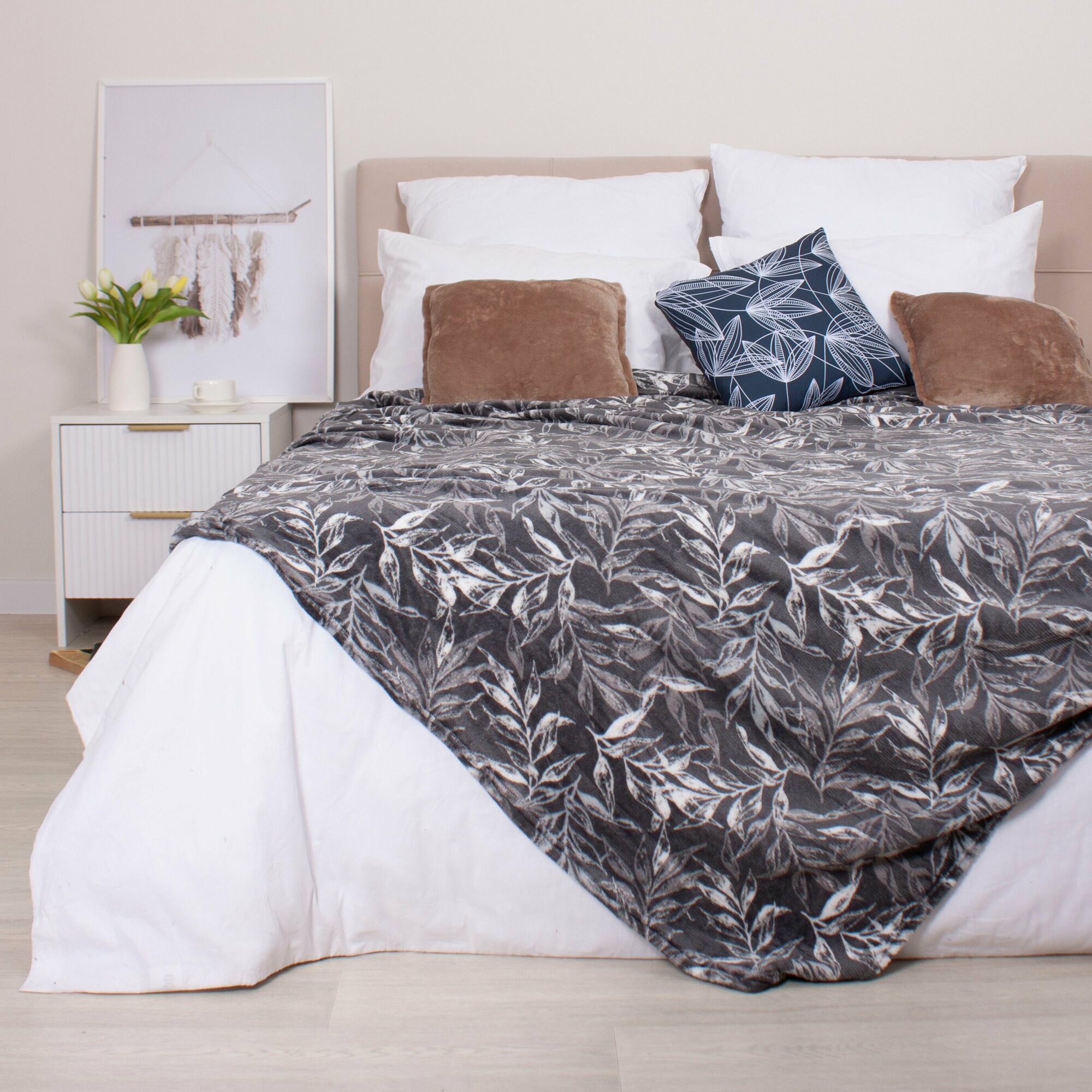 Плед-покрывало велсофт 200х220 см (евро) с принтом, Casa Conforte Камелия Мира темно-серый информация: