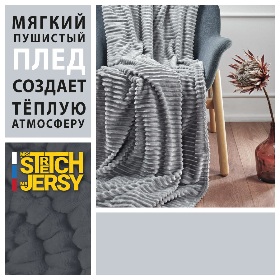 Отзывы на Плед-покрывало "Stretch Jersy" 200 x 220, мягкий и теплый, велсофт, светло-серый