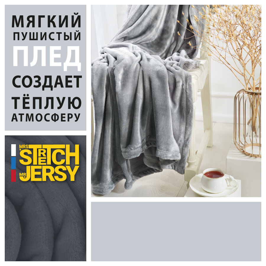 Отзывы на Плед-покрывало для пикника Stretch Jersy 150х200, мягкий и теплый, велсофт, светло-серый