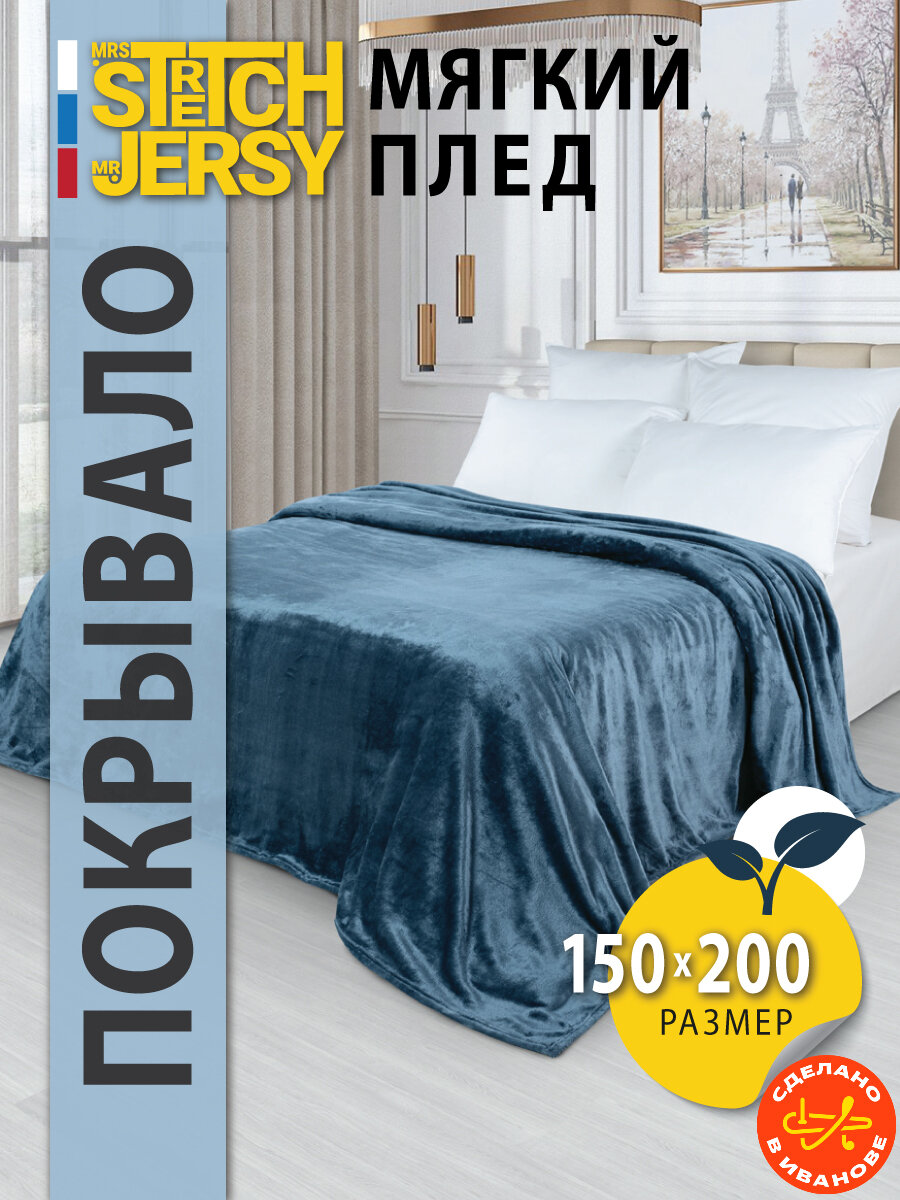 10 цен на Плед-покрывало для пикника Stretch Jersy 150х200, мягкий и теплый, велсофт, индиго